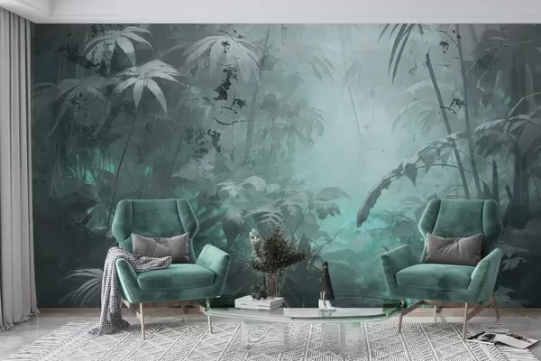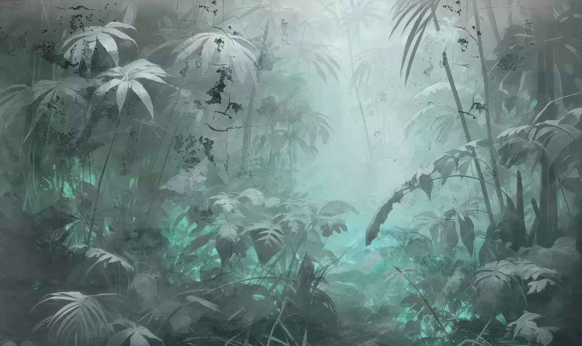 Valokuvatapetti Maalattu viidakko grunge-betoniseinän takana Nr w04833v1