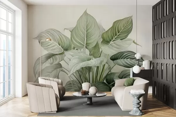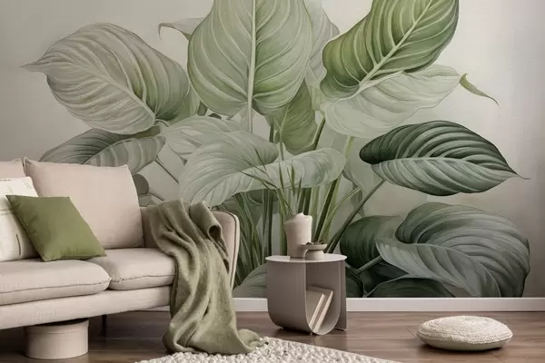 Valokuvatapetti Seinällä oleva rehevä vihreiden lehtien pensas Nr w04835