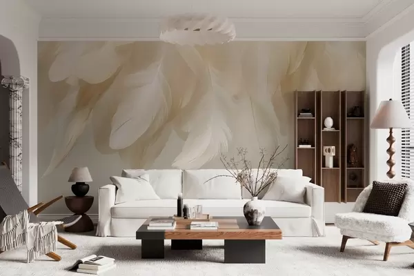 Valokuvatapetti Rehevät ja herkät riippuvat höyhenet rauhoittavissa sävyissä Nr w04842