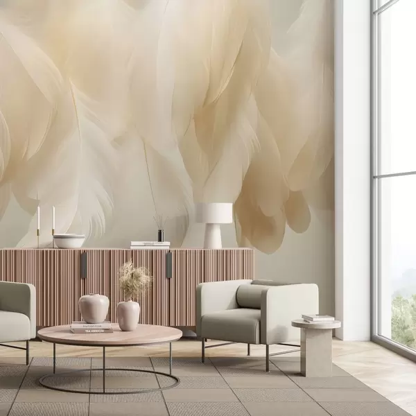 Valokuvatapetti Rehevät ja herkät riippuvat höyhenet rauhoittavissa sävyissä Nr w04842