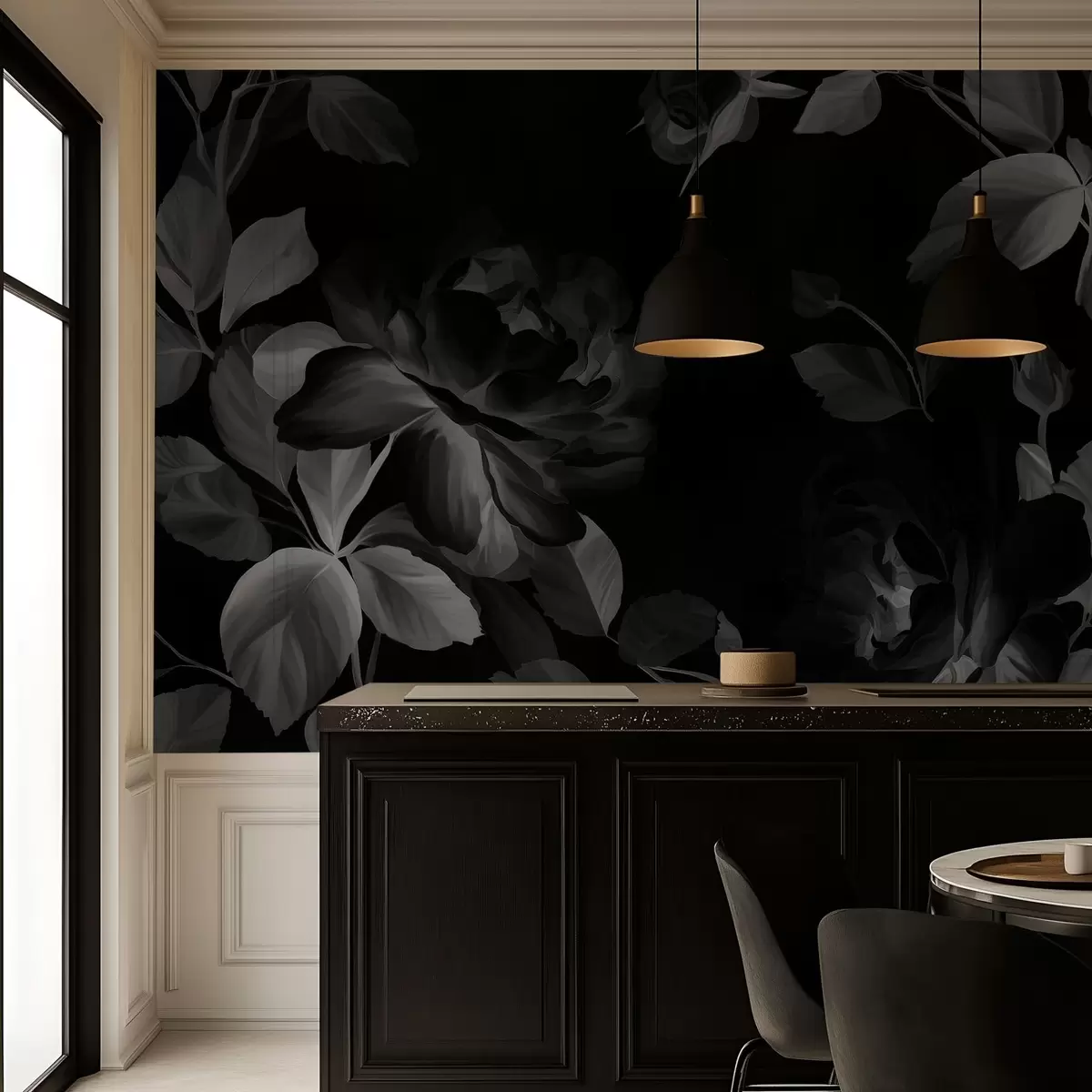 Valokuvatapetti mustavalkoiset maalaukselliset ruusut öljymaalauksen tyylillä Nr w04873v1