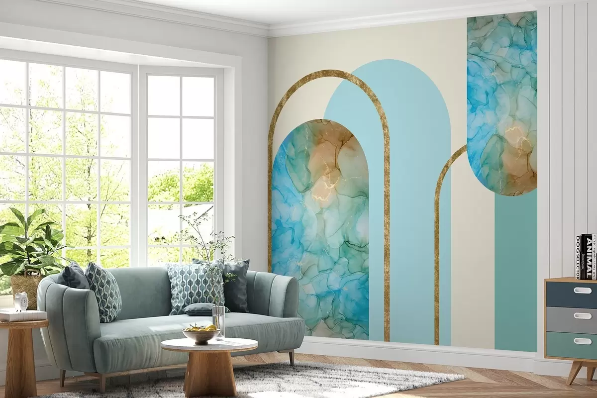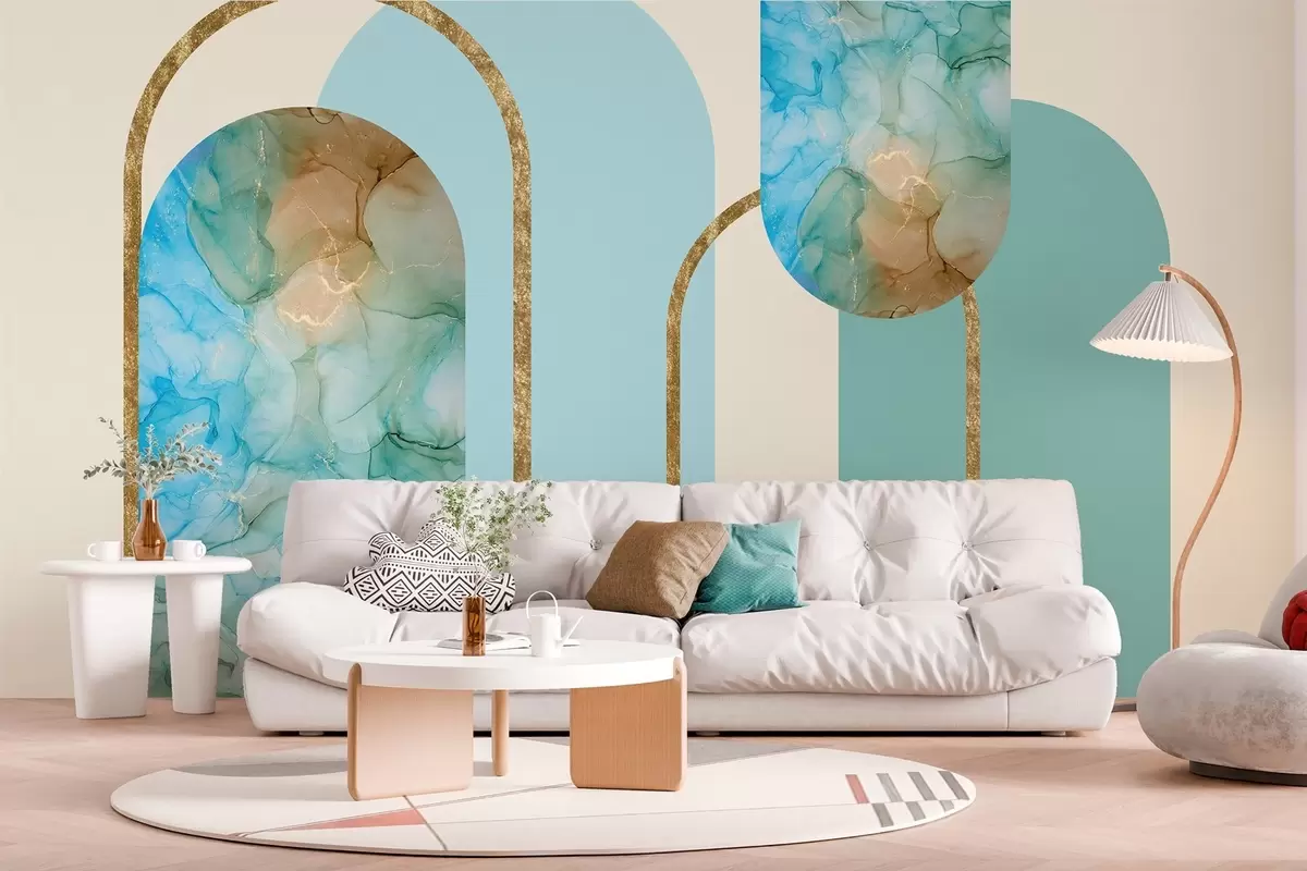 Valokuvatapetti tyylikkäät kaaret, joissa on art deco -tyylinen marmorijäljitelmä Nr w04879