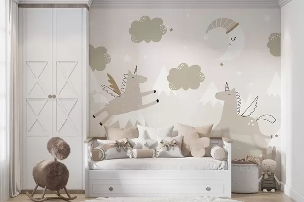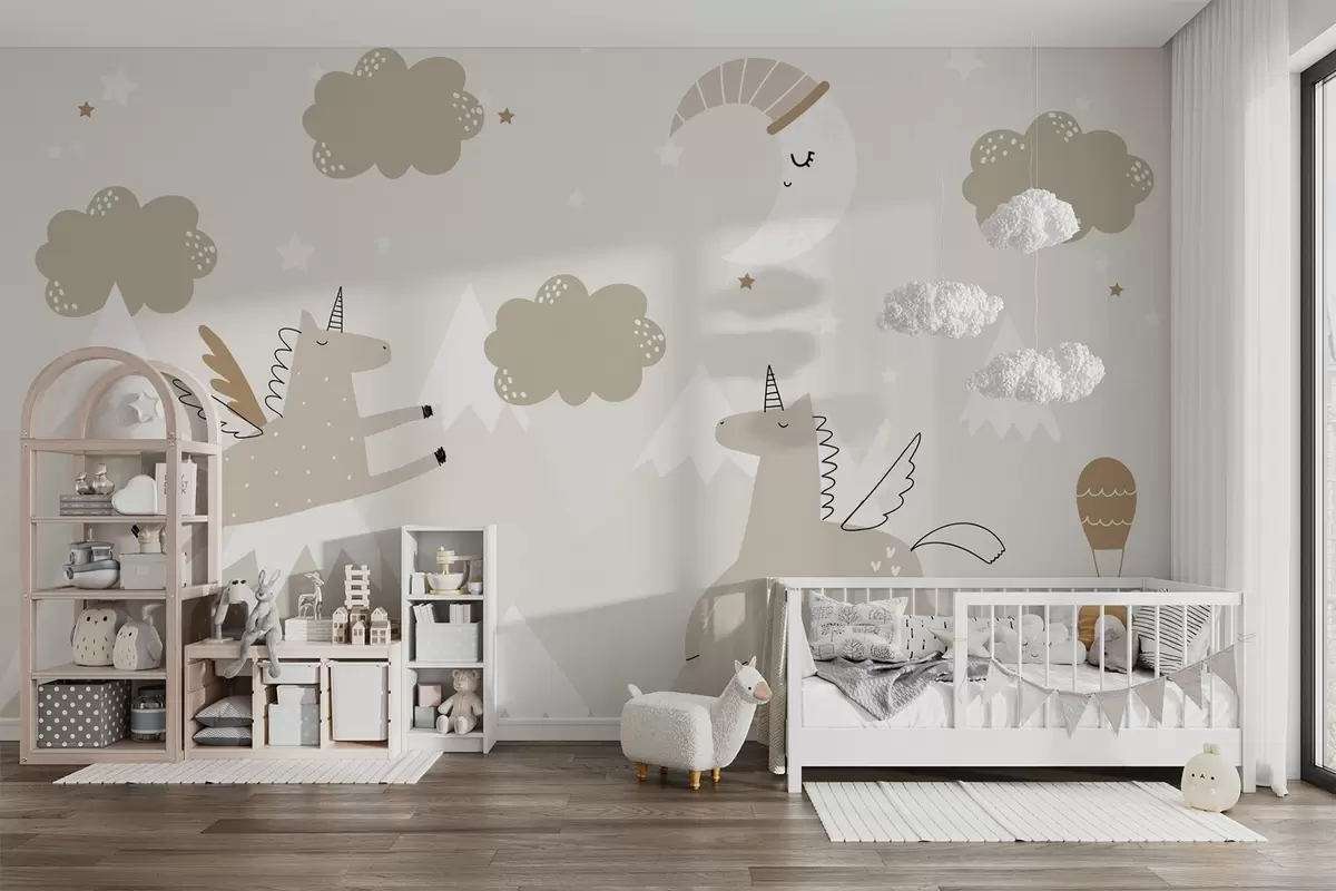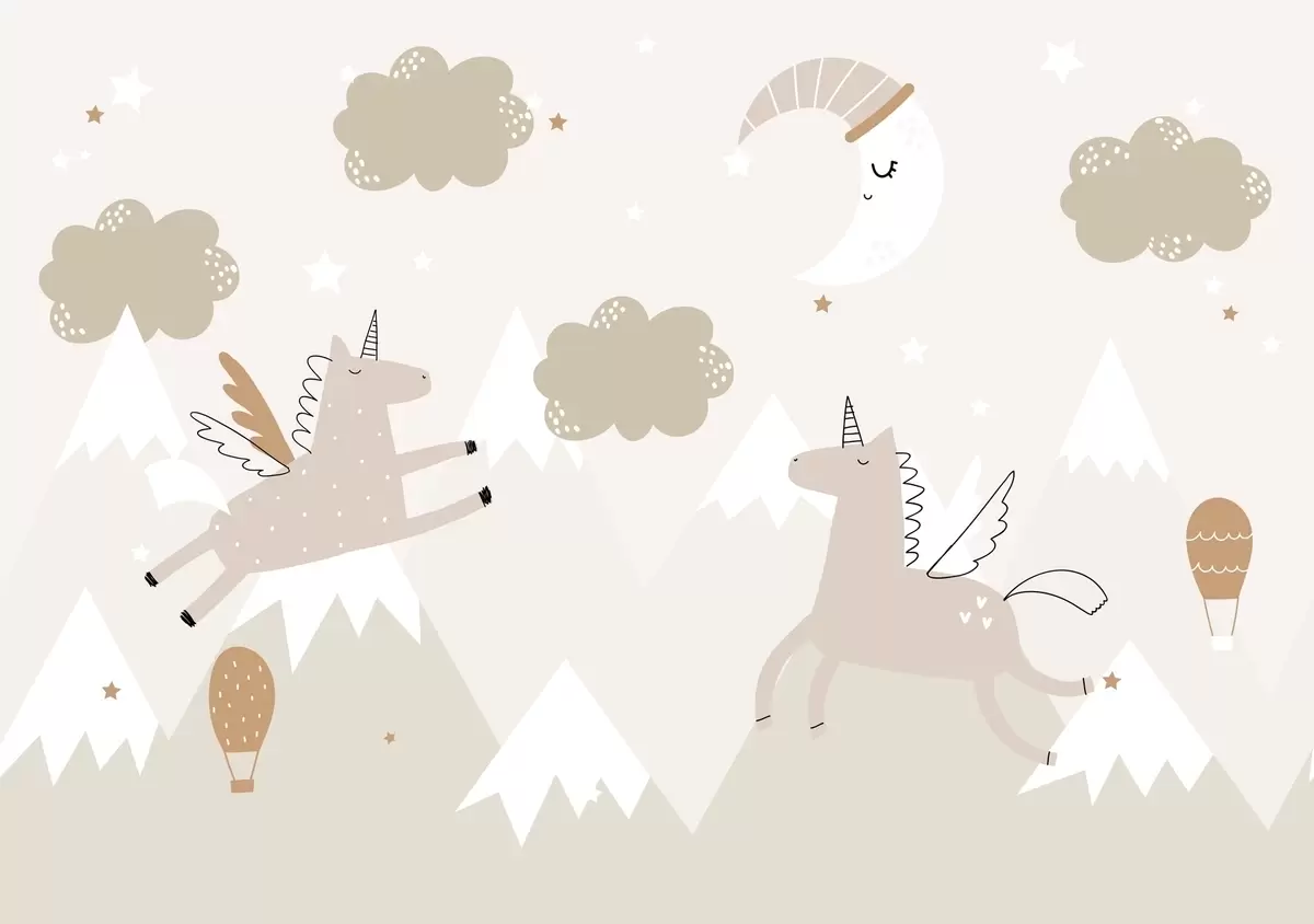 Valokuvatapetti Nukkuva kuu, yksisarviset ja ilmapallot Nr w04886