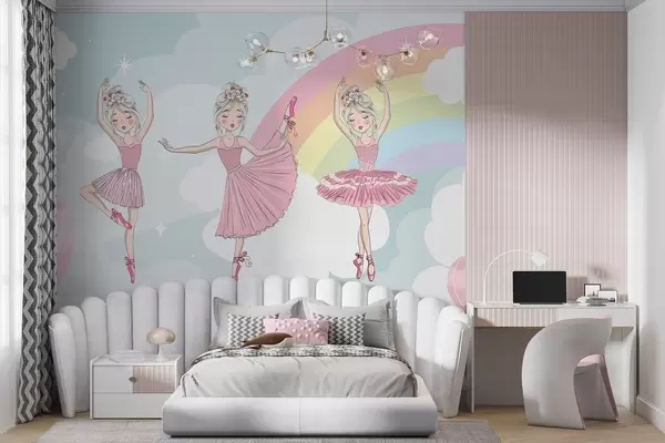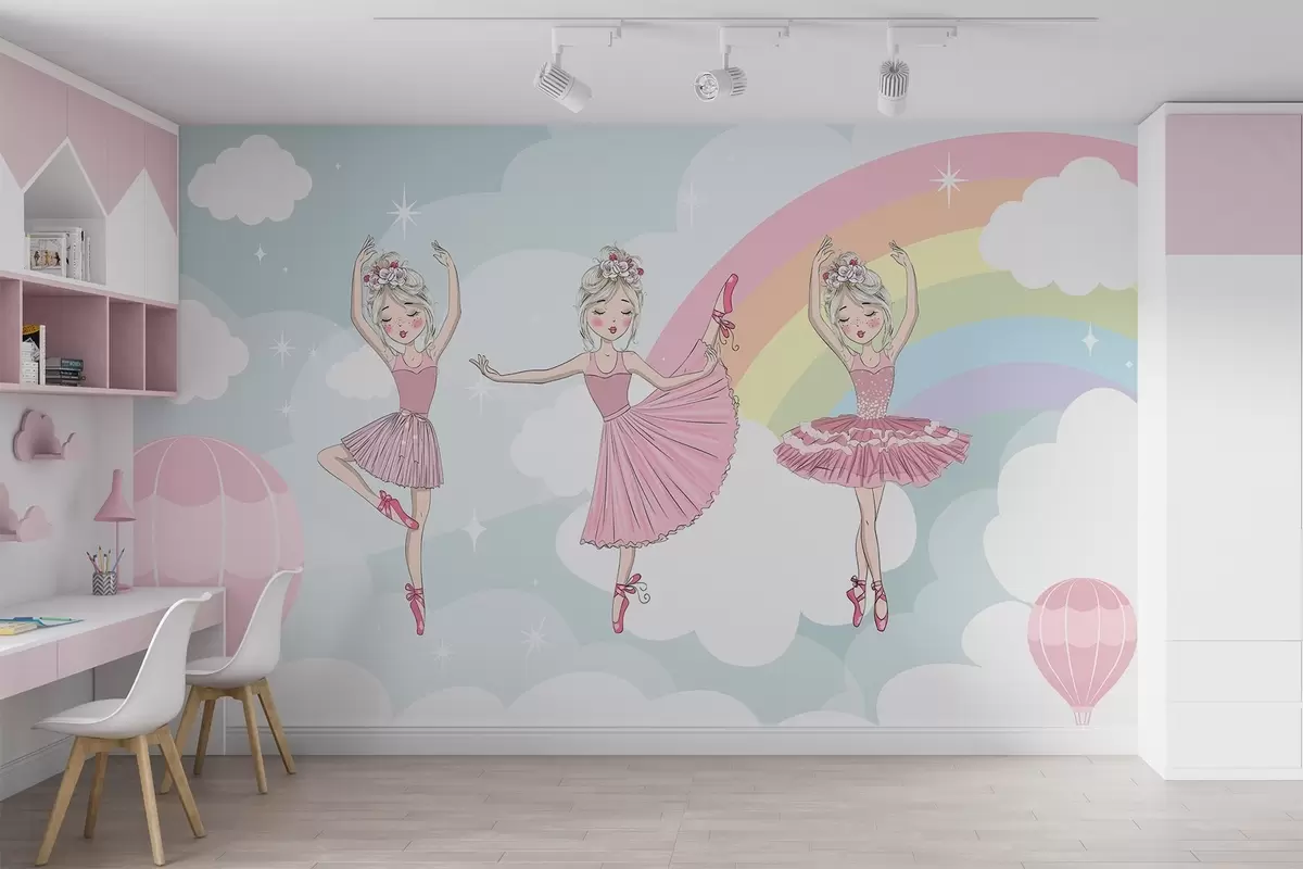 Valokuvatapetti Prinsessat taivaan ja sateenkaaren taustalla Nr w04907