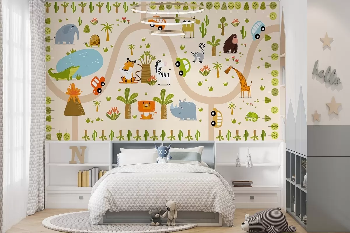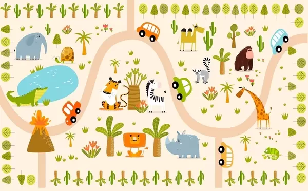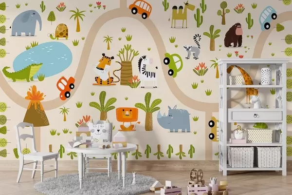 Valokuvatapetti Safari eläinten ja autojen kanssa Nr w04931