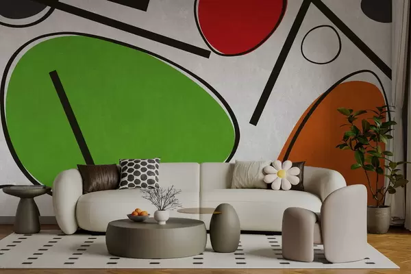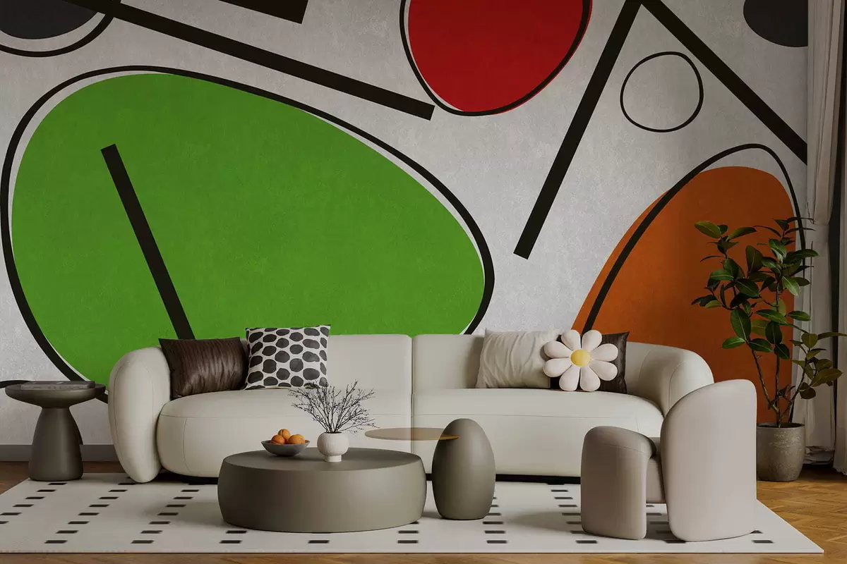 Valokuvatapetti Abstraktit geometriset muodot viivoilla ja rohkeilla värialueilla Nr w05017v1