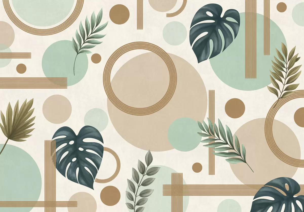 Valokuvatapetti Geometrinen kuvio vihreillä lehdillä Nr w05018v1