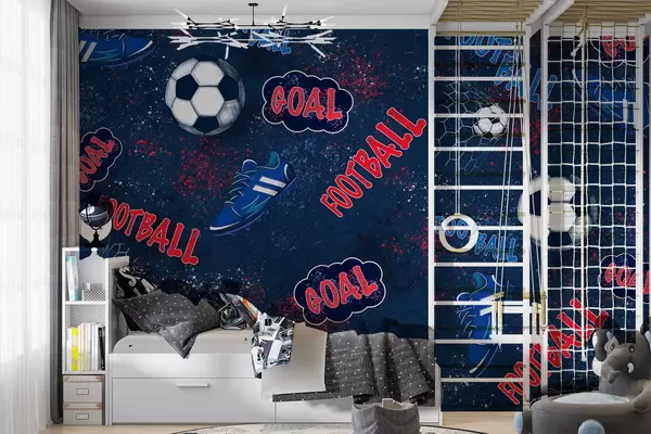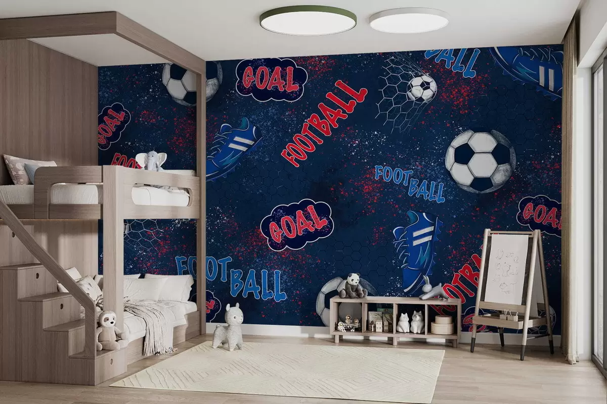 Valokuvatapetti Toistuva kuvio, jossa on palloja, nappuloita ja tekstielementtejä Nr w05037v2