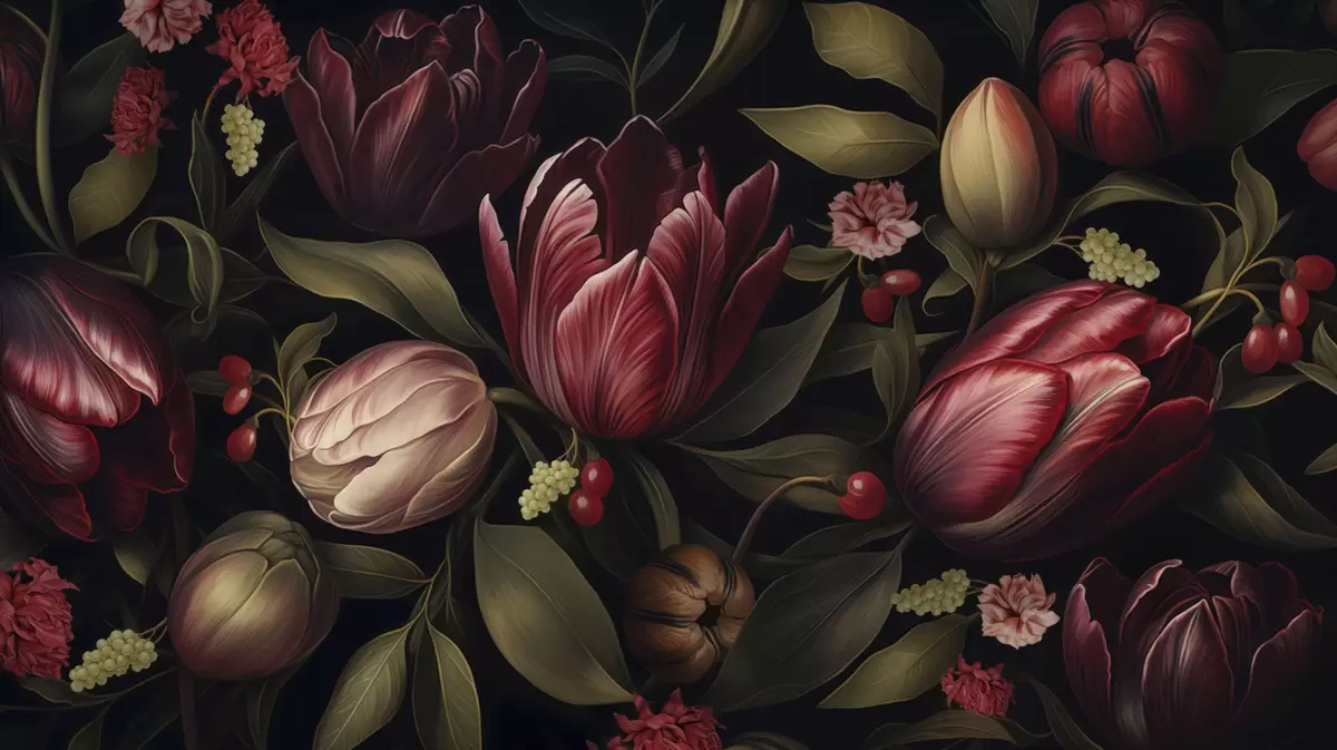 Valokuvatapetti Tumma tulppaanipuutarha Nr w05038
