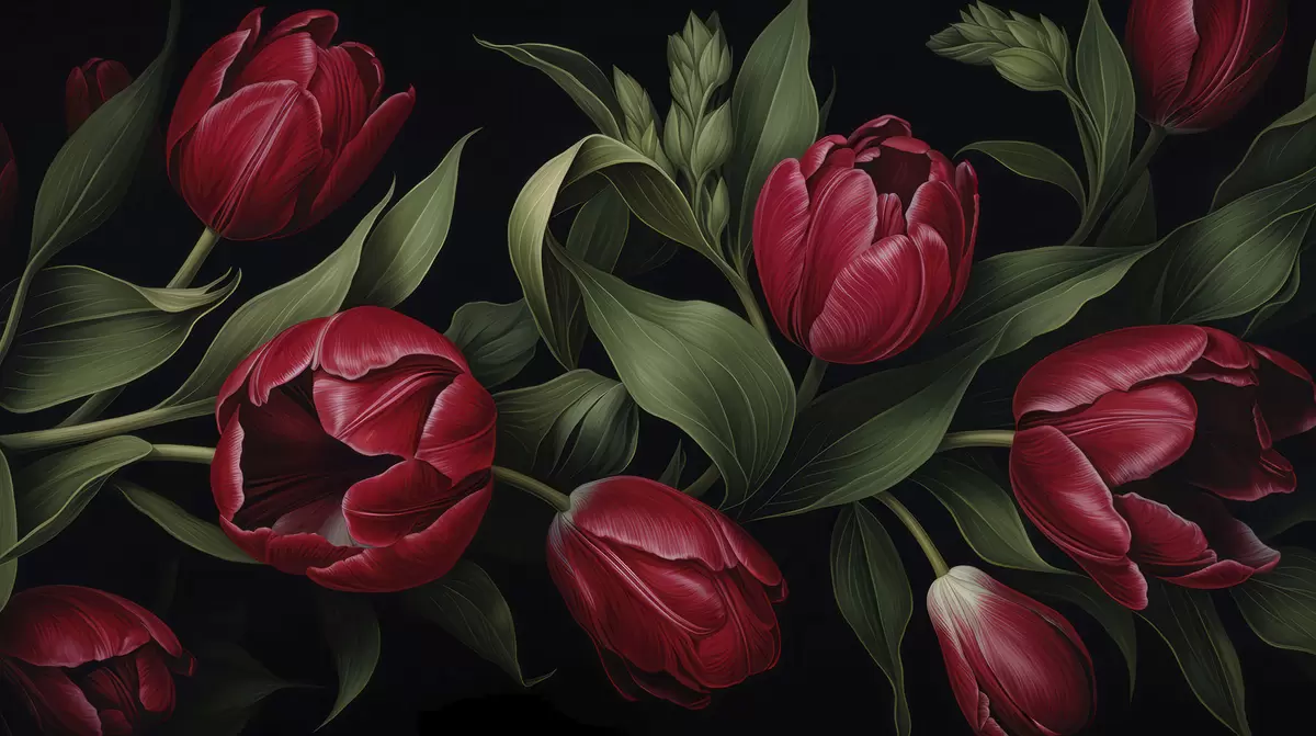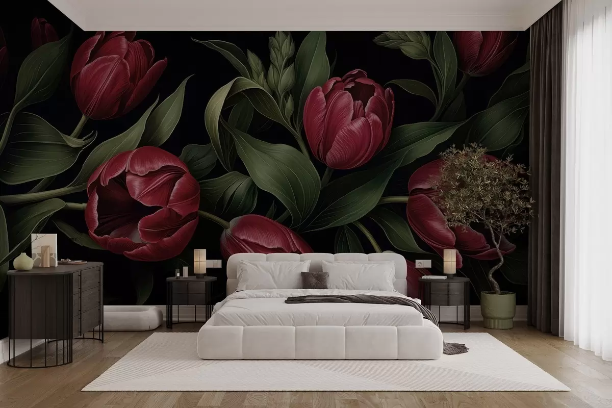 Valokuvatapetti Yön punaiset tulppaanit Nr w05047