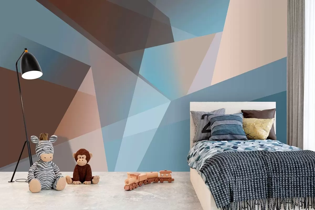 Valokuvatapetti abstrakti geometria sinisen ja ruskean sävyissä Nr w05064