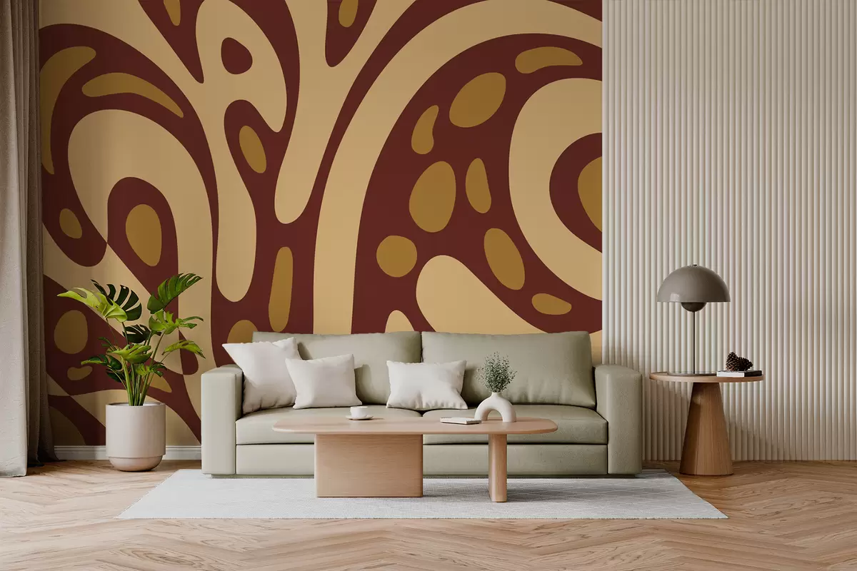 Valokuvatapetti Abstrakti kuvio, jossa on ruskeita ja beigejä muotoja Nr w05071v2