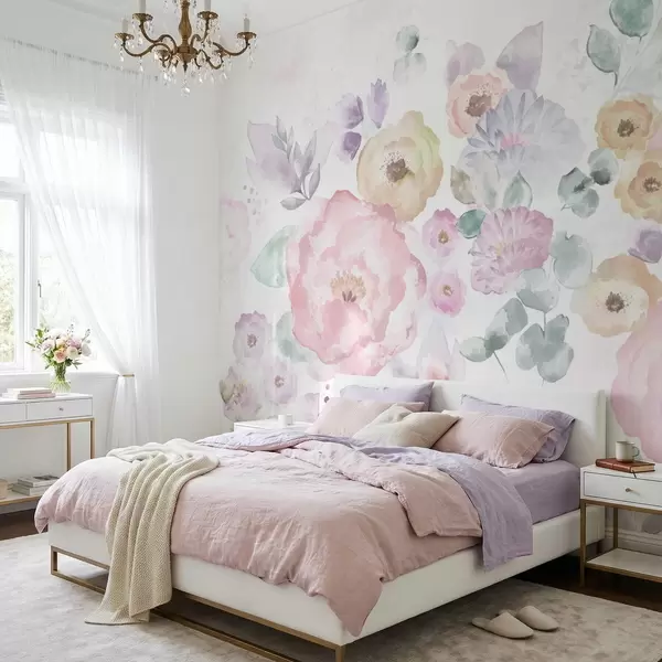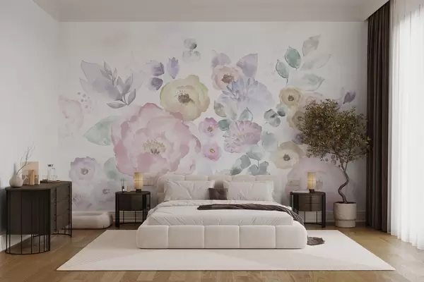 Valokuvatapetti Pehmeä vesivärimaalaus, jossa on kukkia ja lehtiä Nr w05093