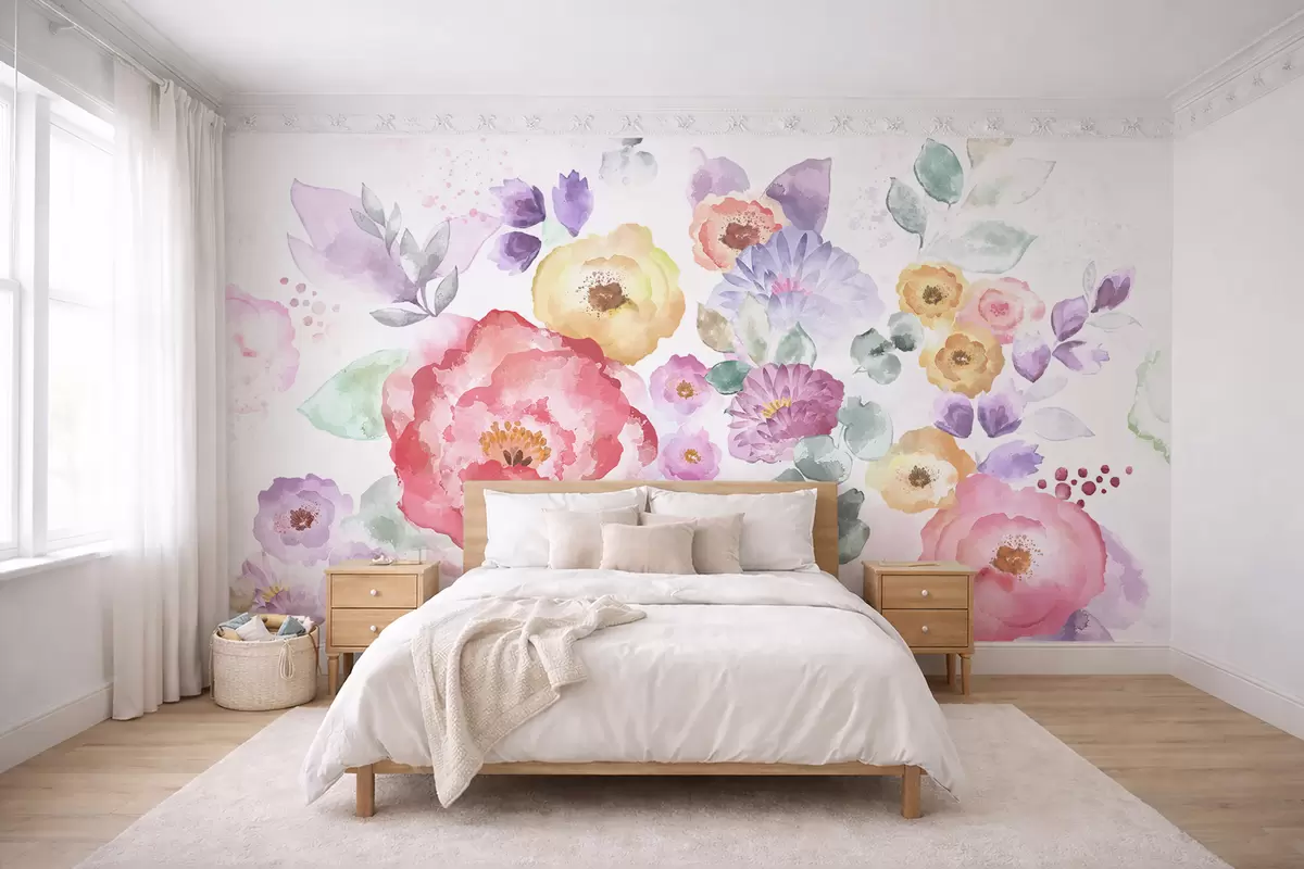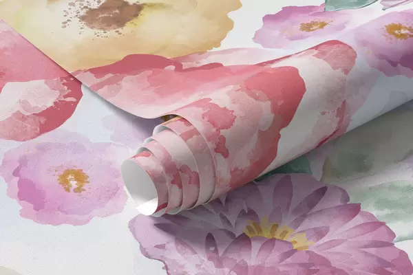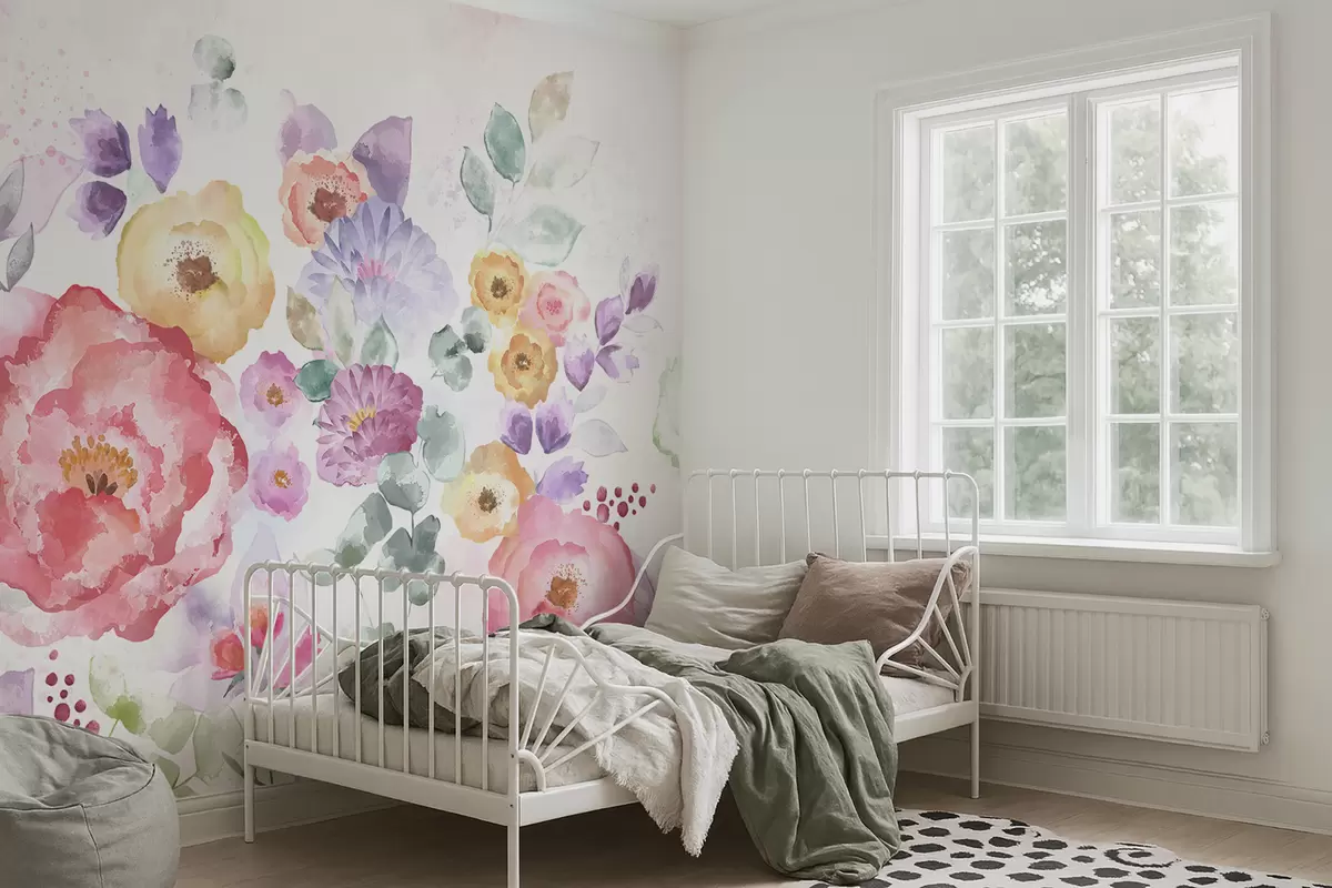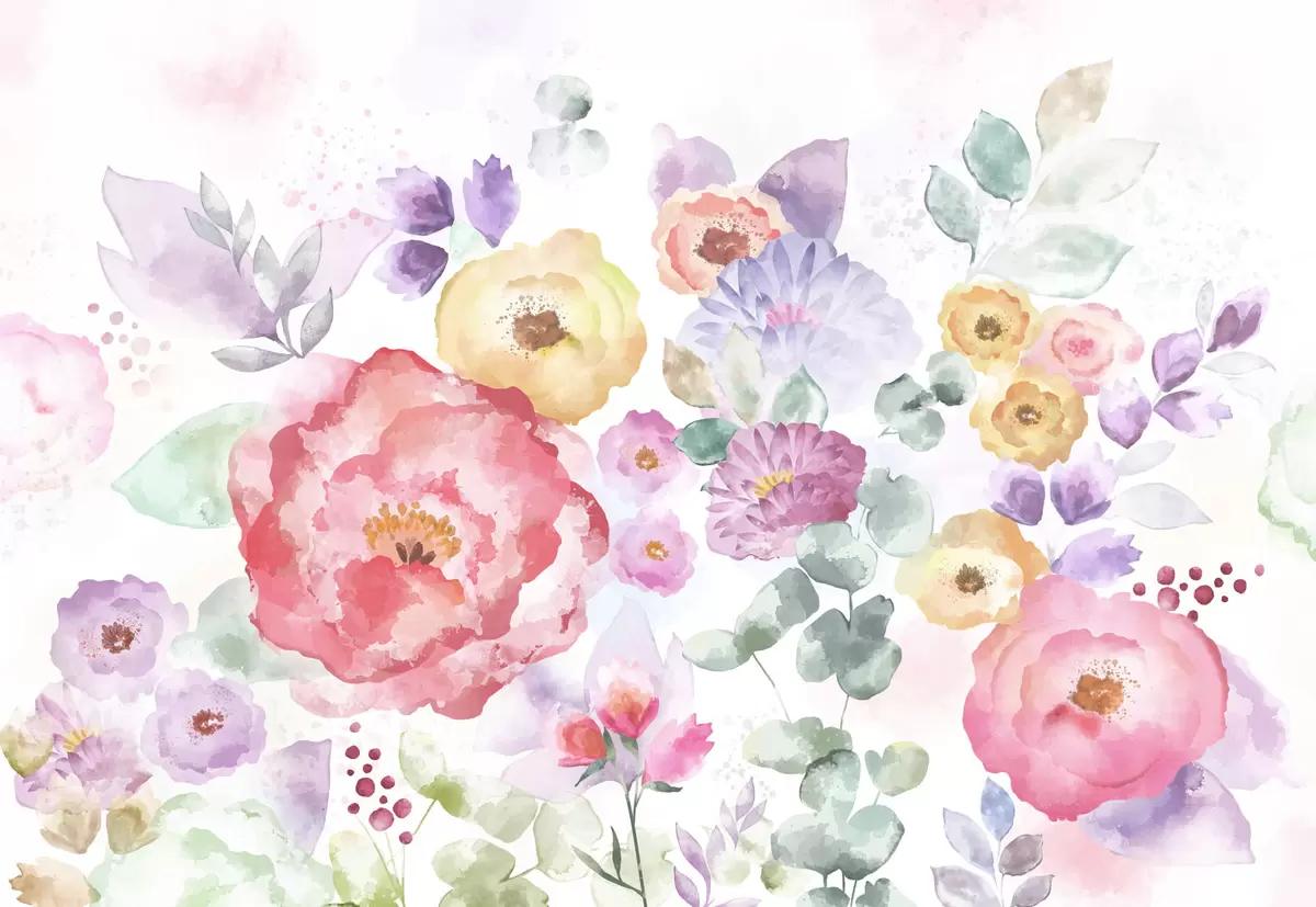 Valokuvatapetti Pastellivärit vesiväri kukat vaalealla taustalla Nr w05093v1