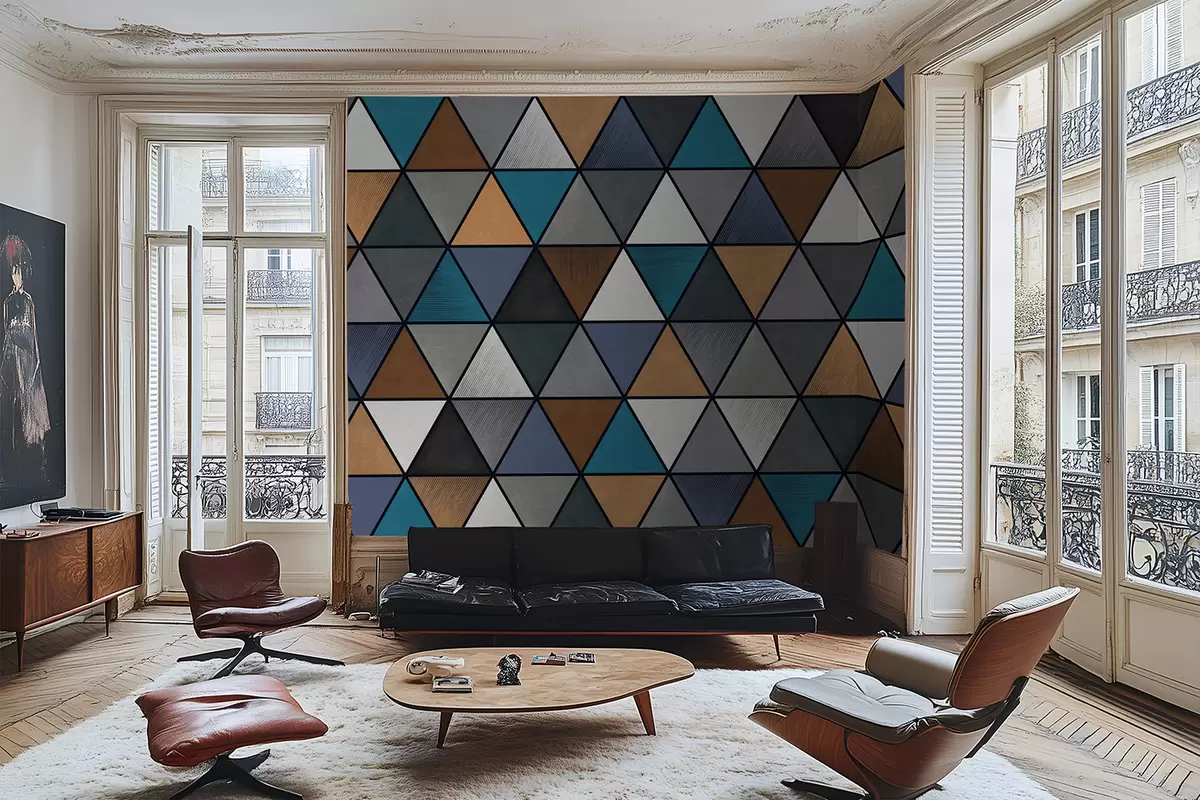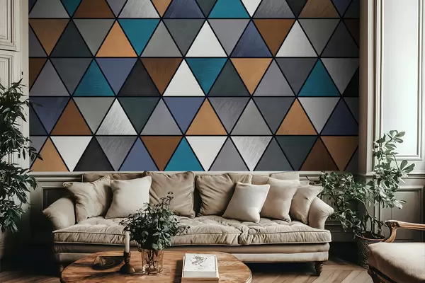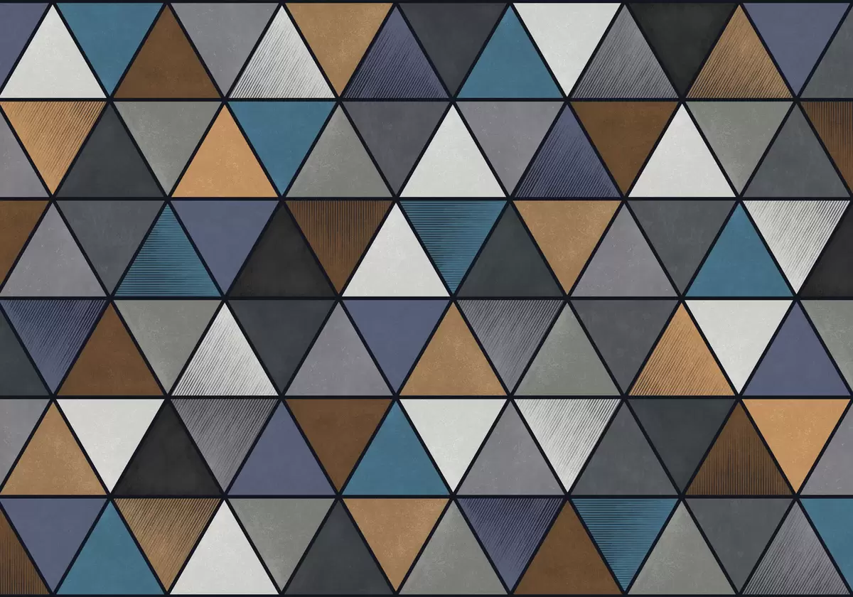 Valokuvatapetti Sininen ja lämpimien sävyjen kolmiomainen geometrinen kuvio Nr w05095