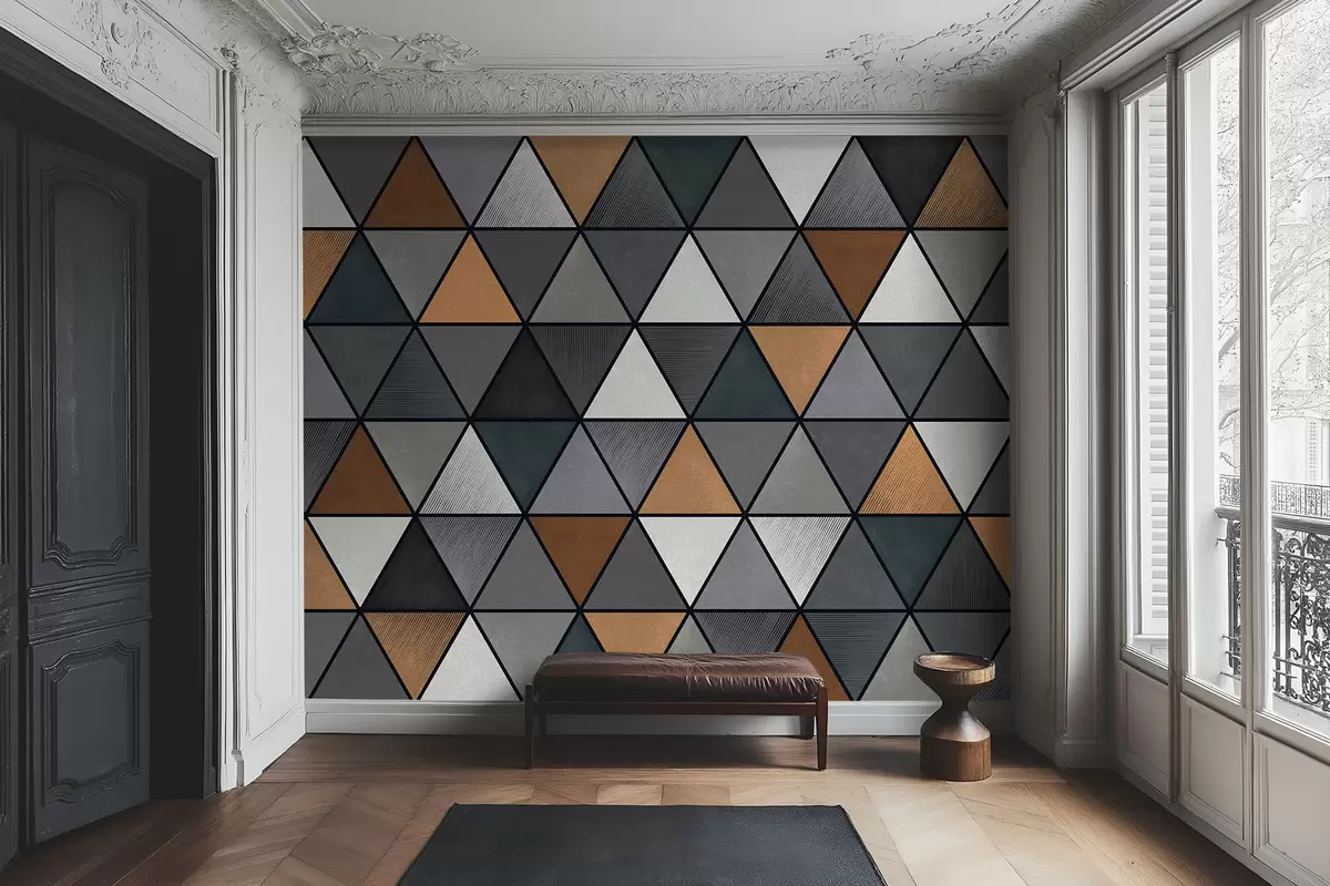 Valokuvatapetti Kolmiokuvio harmailla ja lämpimillä sävyillä Nr w05095v1