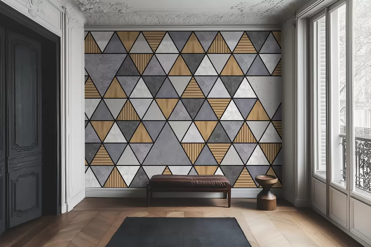 Valokuvatapetti Geometrinen kuvio, jossa on kolmioita ja tekstuureja Nr w05096