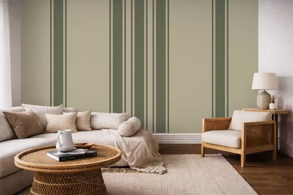 Valokuvatapetti Vertikaaliset raidat hillityn vihreässä ja beige-sävyisessä paletissa Nr w05098