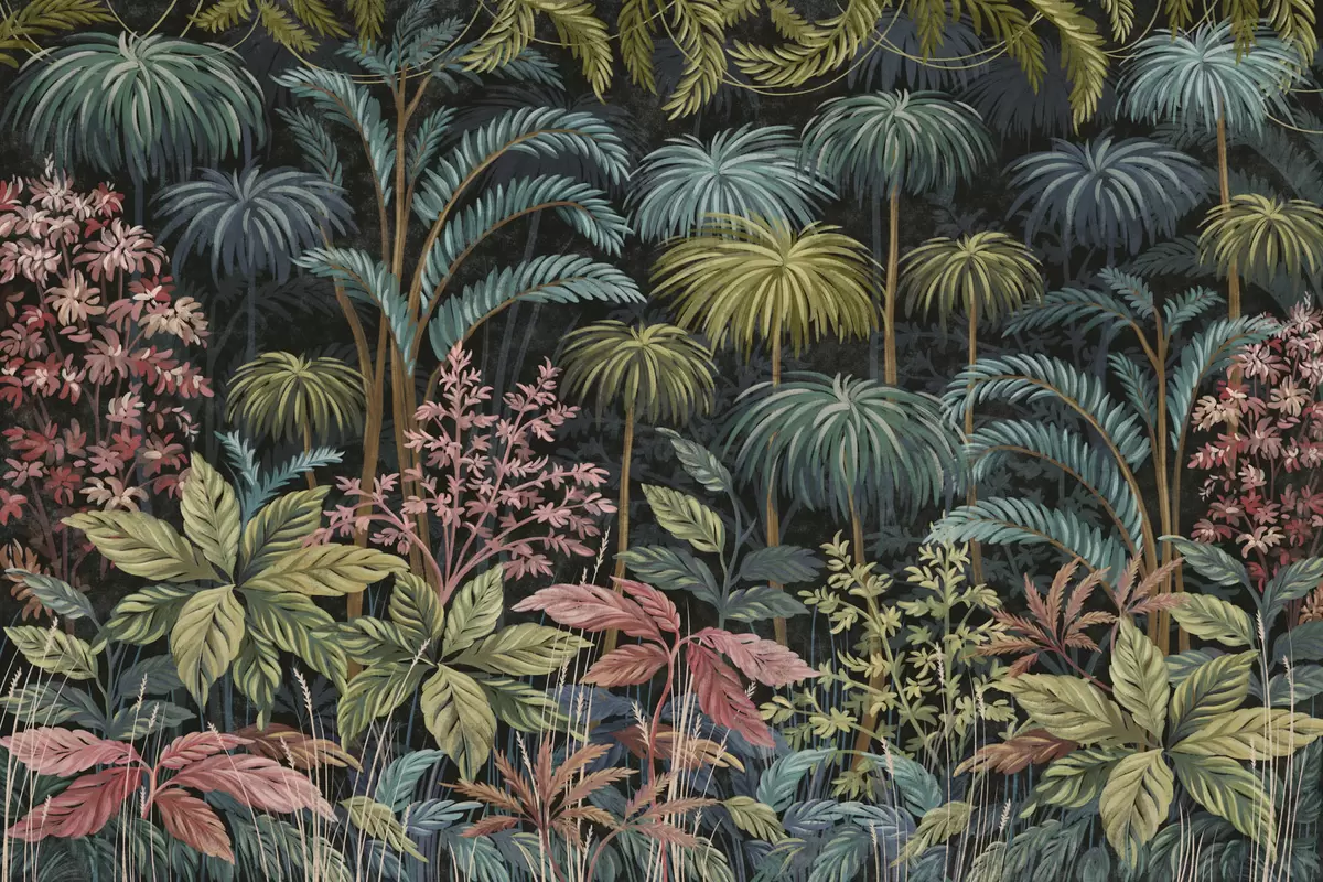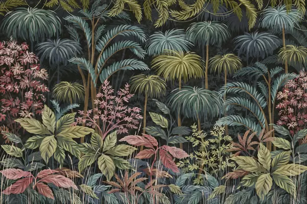 Valokuvatapetti Tiheä trooppinen lehtimetsä, jossa on suuret lehdet Nr w05116