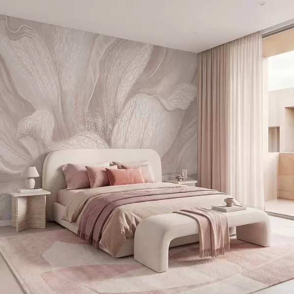 Valokuvatapetti Abstrakti kukkakuvio vaaleanbeigeissä sävyissä Nr w05119