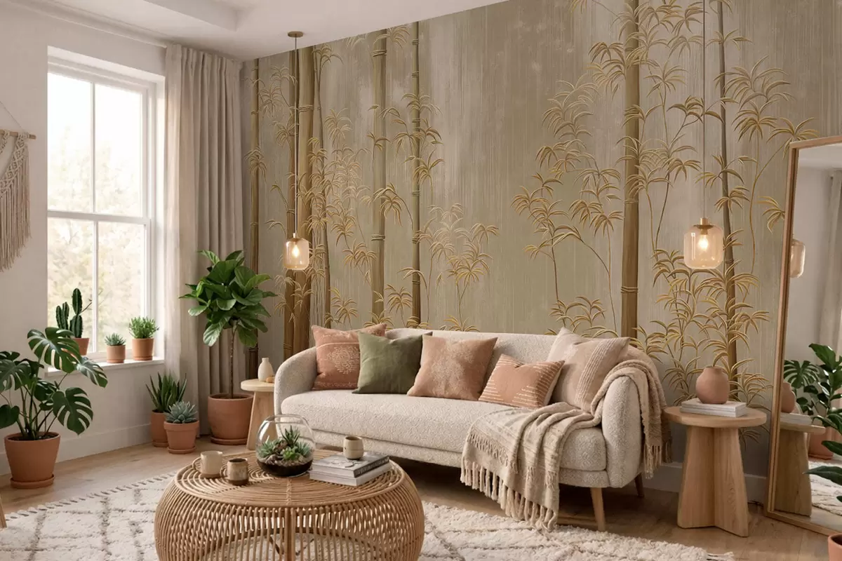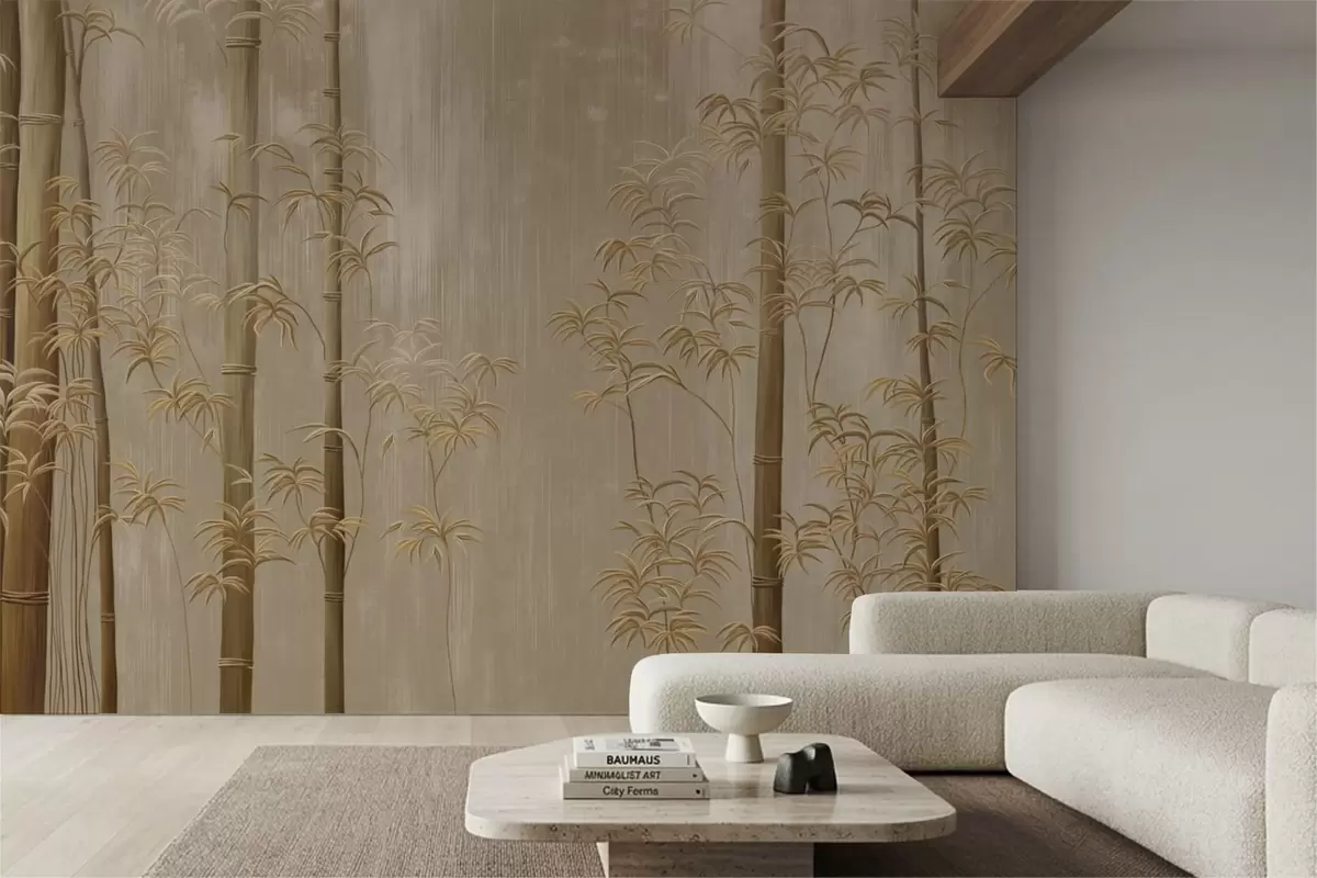 Valokuvatapetti Vaaleanbeige bambu, jossa on ohuet varret Nr w05120v2