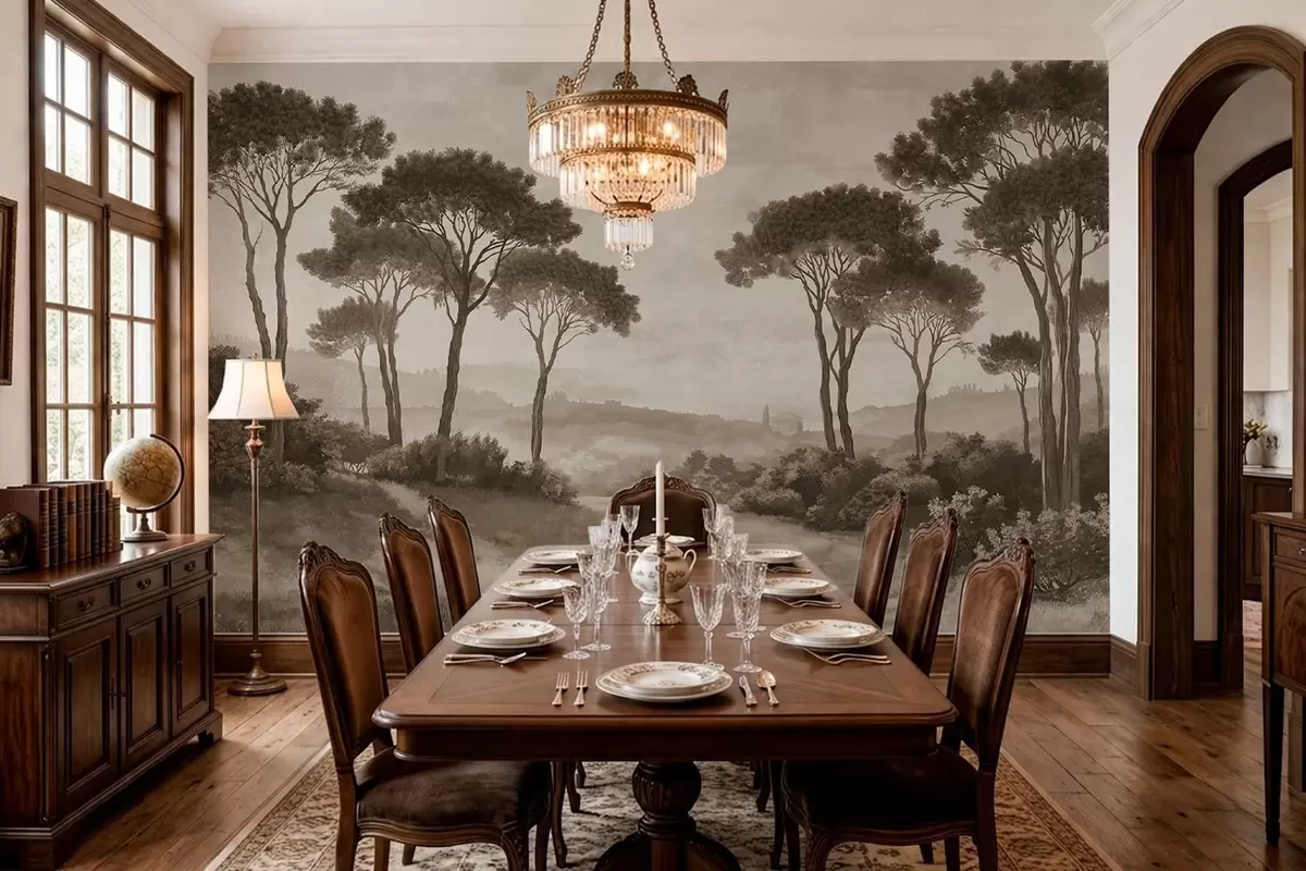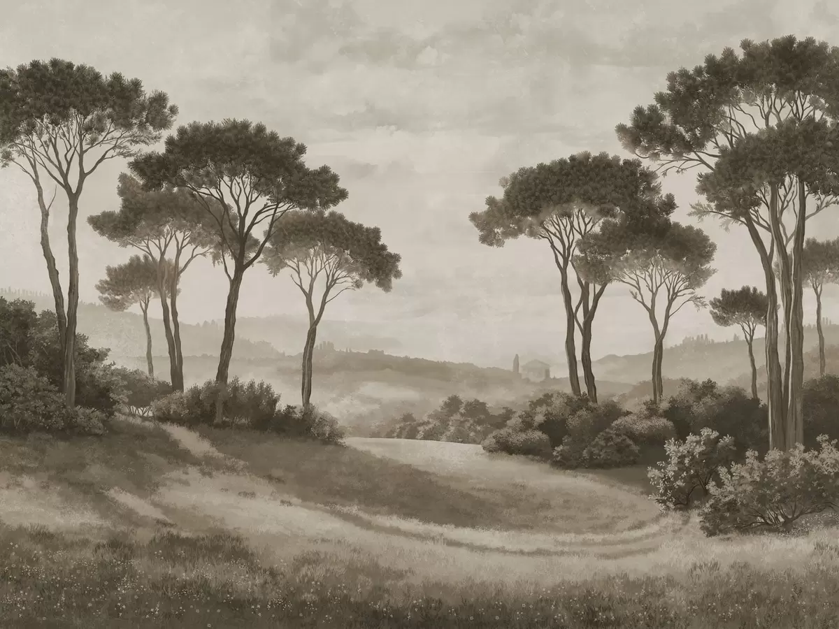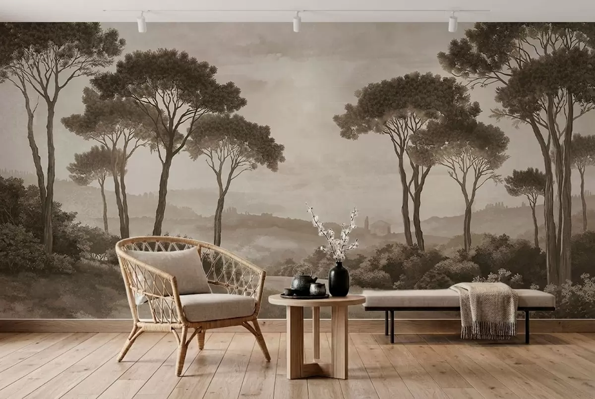 Valokuvatapetti Maisema, jossa on puita, vintage-sepiasävyissä Nr w05122v2