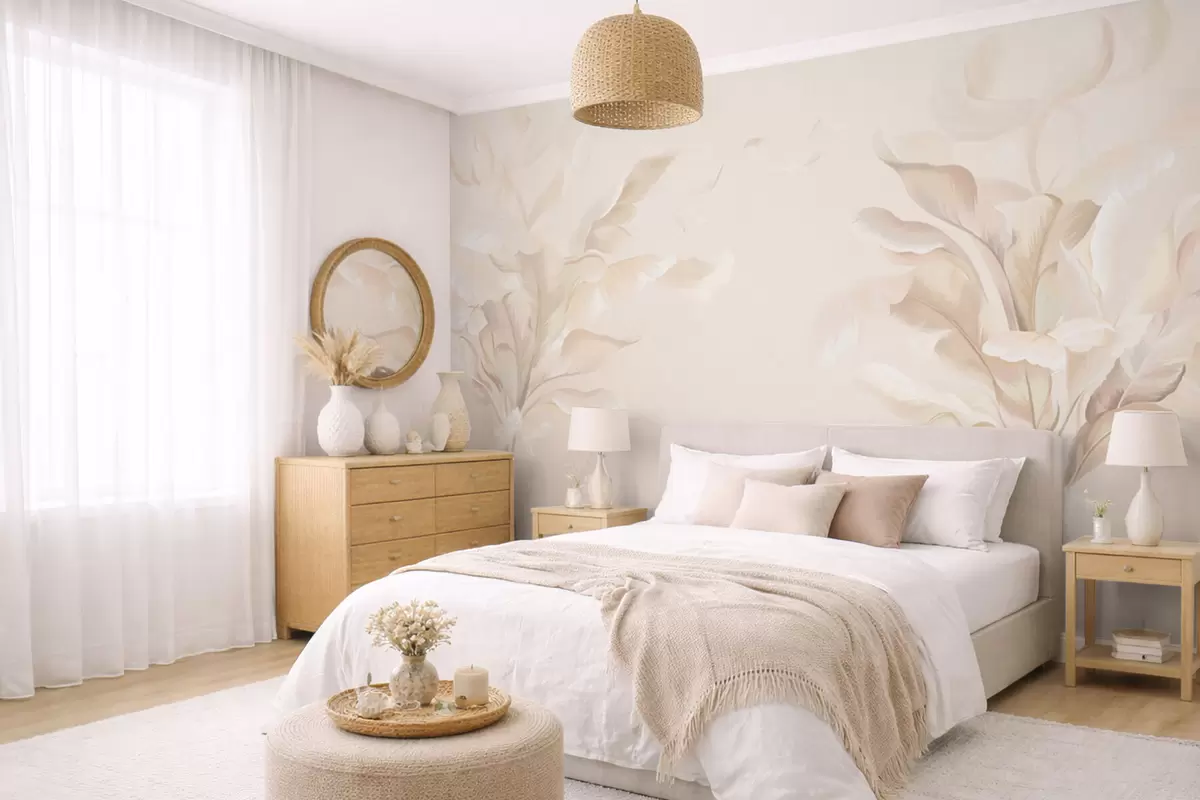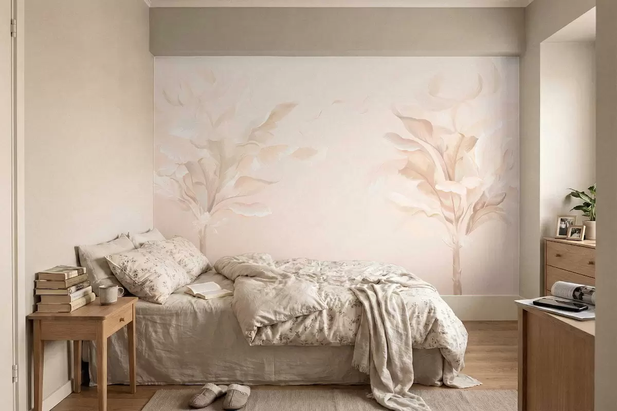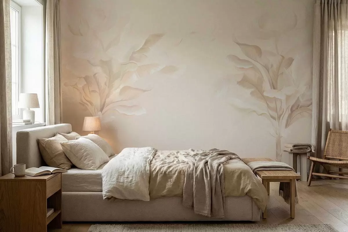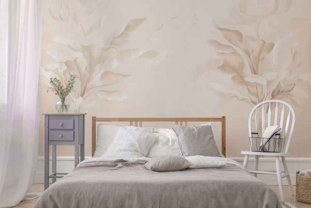 Valokuvatapetti Ilmavat koristekasvit lämpimissä kermanvärisissä sävyissä Nr w05126