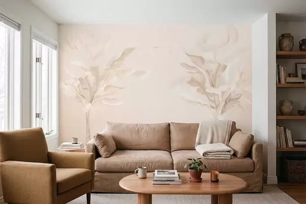 Valokuvatapetti Ilmavat koristekasvit lämpimissä kermanvärisissä sävyissä Nr w05126