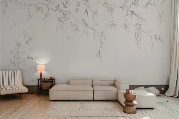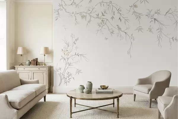 Valokuvatapetti Hienostuneet kukat ja linnut liitutaustalla Nr w05127