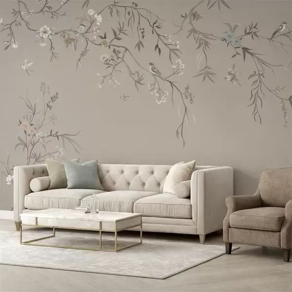 Valokuvatapetti Kukkakoriste ja linnut neutraalilla taustalla Nr w05127v3