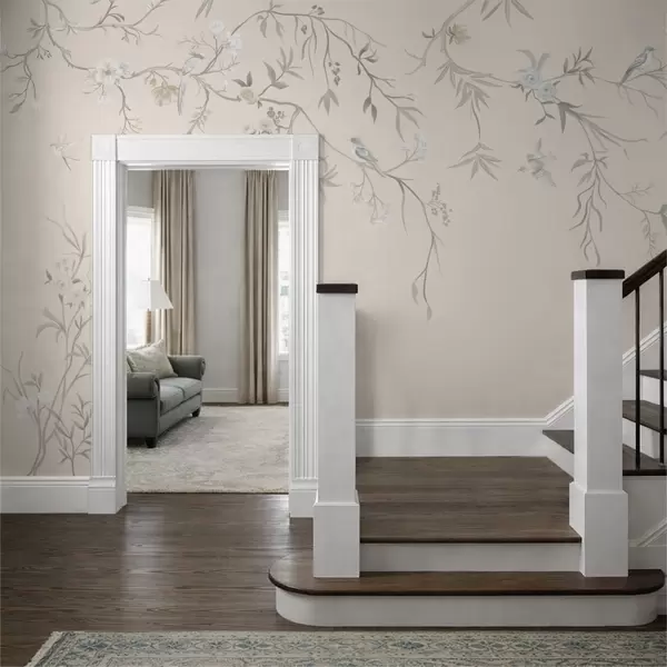 Valokuvatapetti Kukkaset ja linnut vaalealla taustalla Nr w05127v7