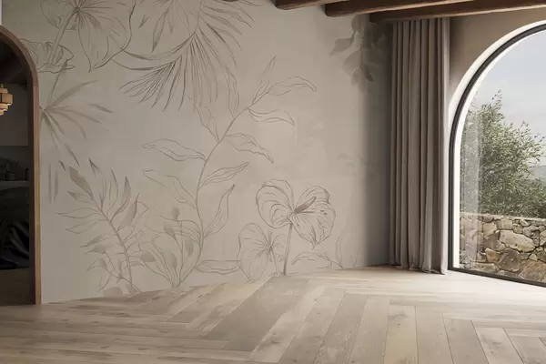 Valokuvatapetti Lineaariset kasvit teksturoidulla beige-taustalla Nr w05128