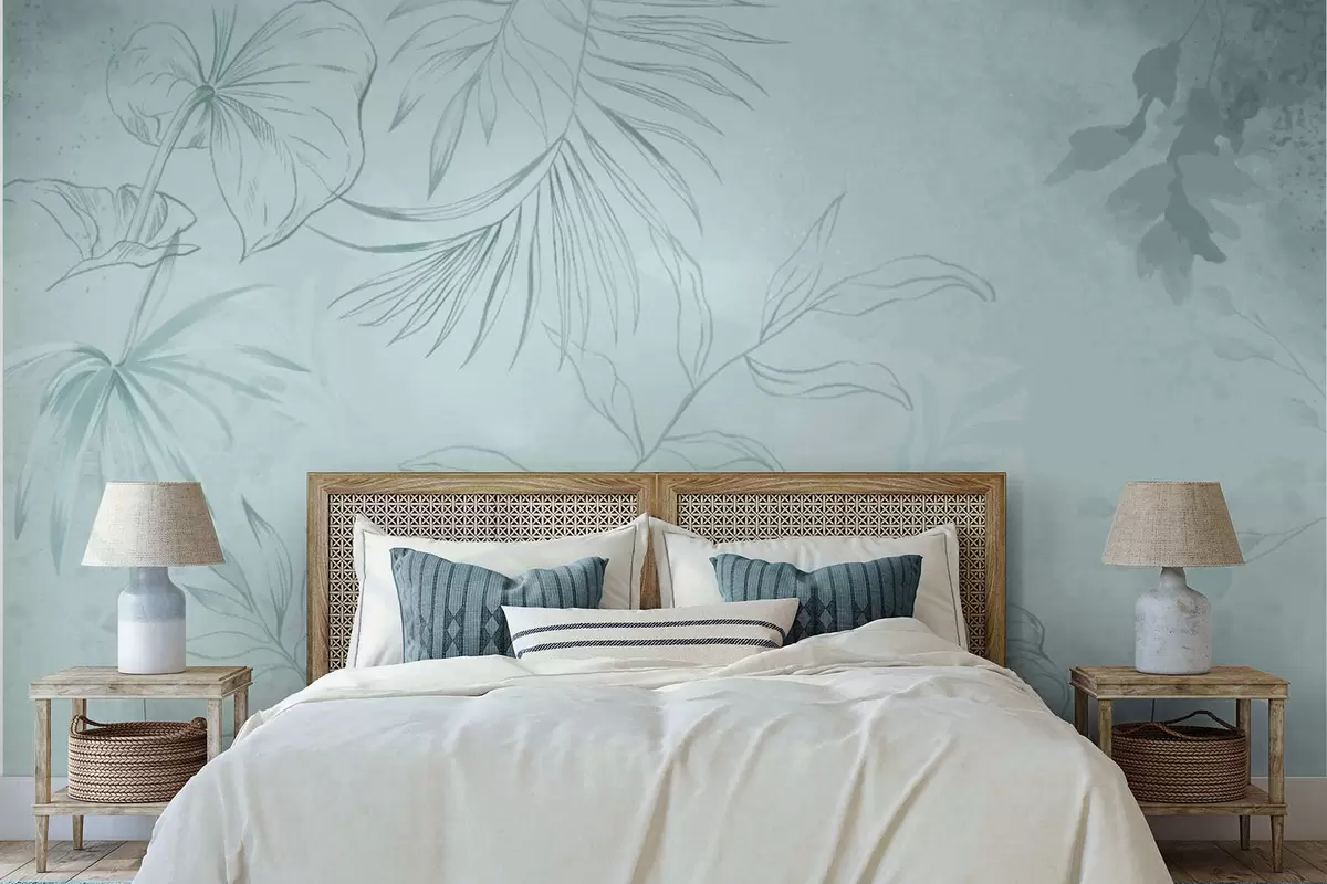 Valokuvatapetti Lineaariset kasvit pehmeällä vihertävällä taustalla Nr w05128v1