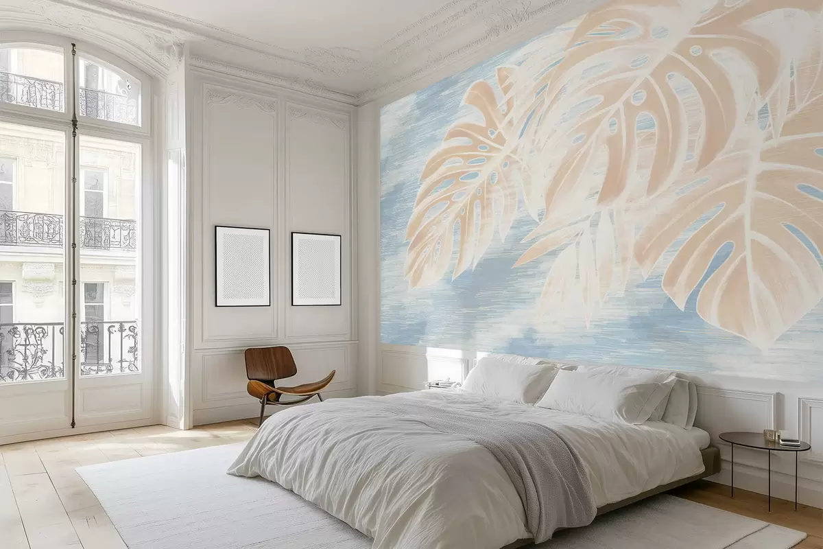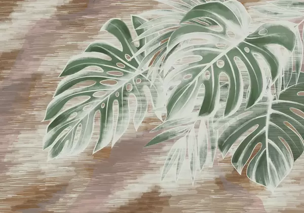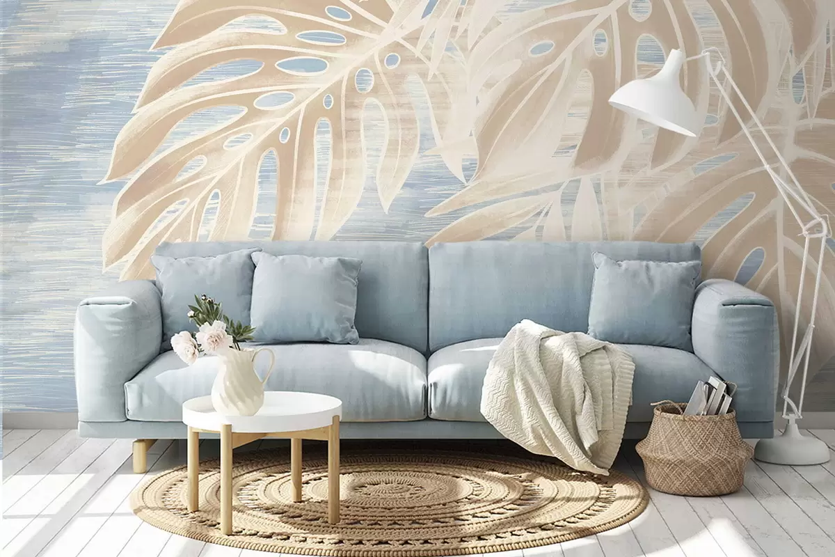 Valokuvatapetti Abstraktit lehdet lämpimissä beige-sävyissä vaalealla taustalla Nr w05130