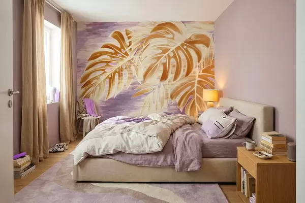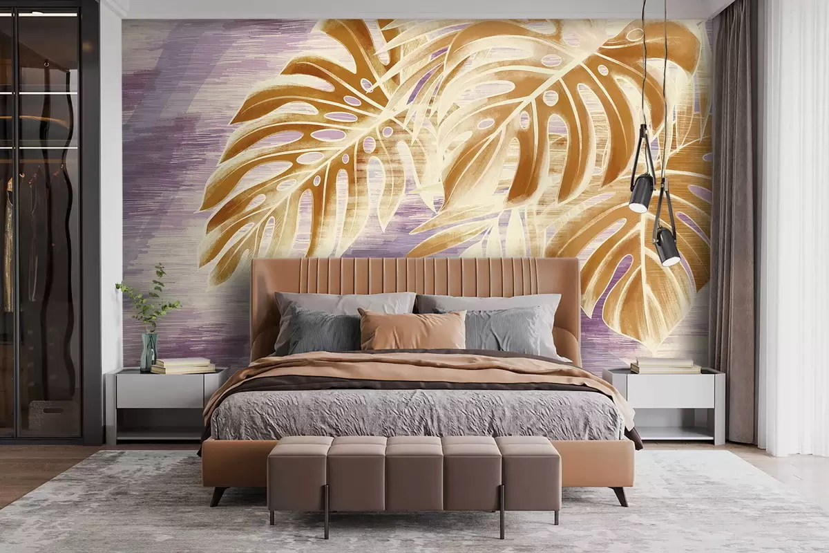 Valokuvatapetti Lehtiä lämpimissä oranssin sävyissä purppuran taustalla Nr w05130v2
