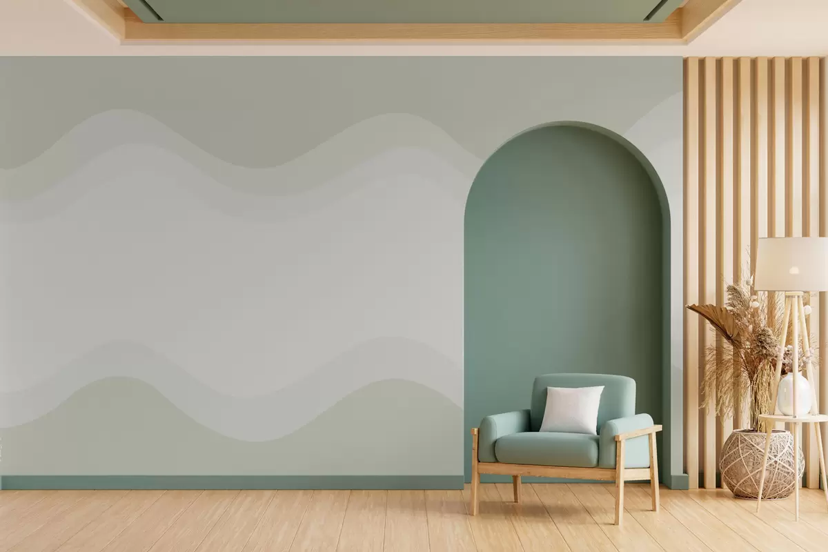 Valokuvatapetti Abstraktit aallot vaaleanvihreässä paletissa Nr w05132v1