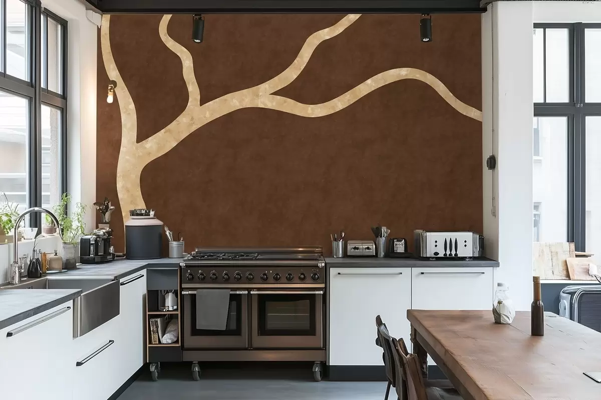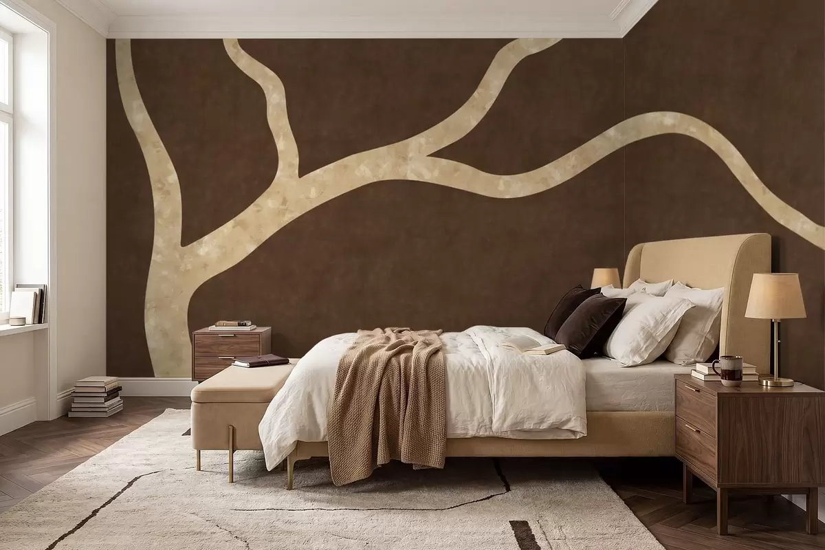 Valokuvatapetti Vaalea oksa ruskealla taustalla Nr w05144v1