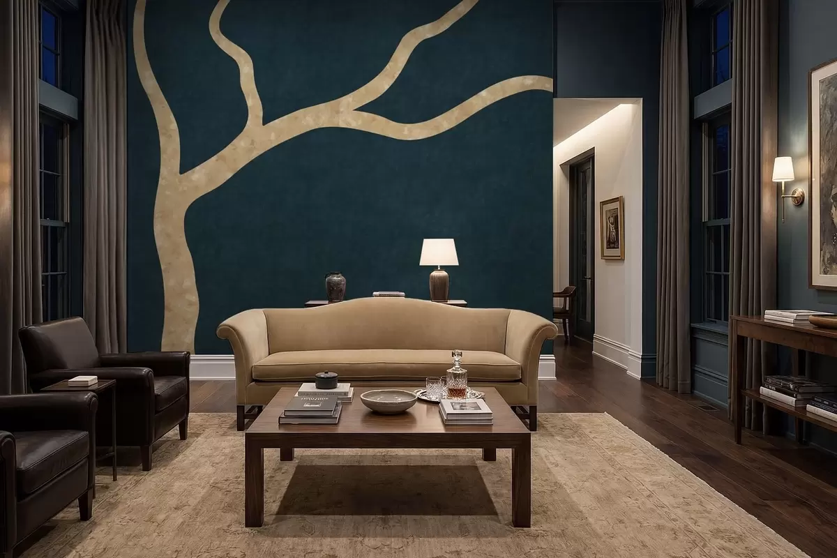 Valokuvatapetti Vaalea oksa tumman sinivihreällä taustalla Nr w05144v3