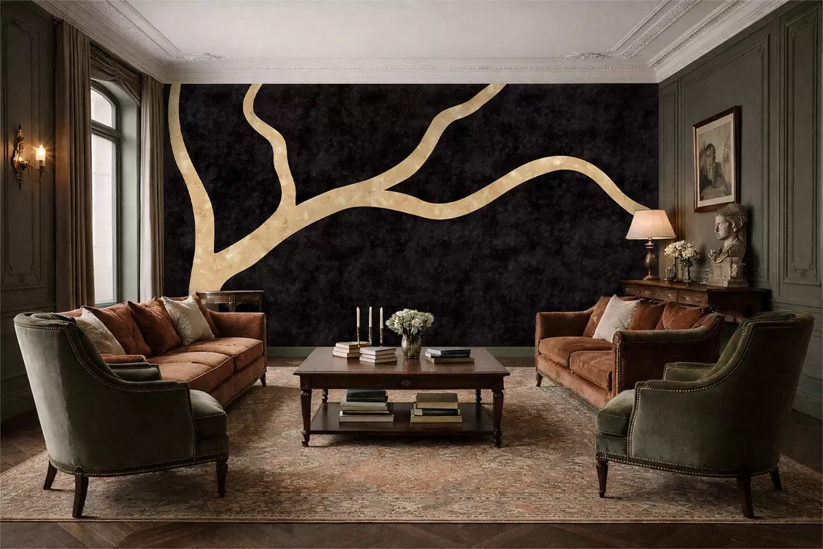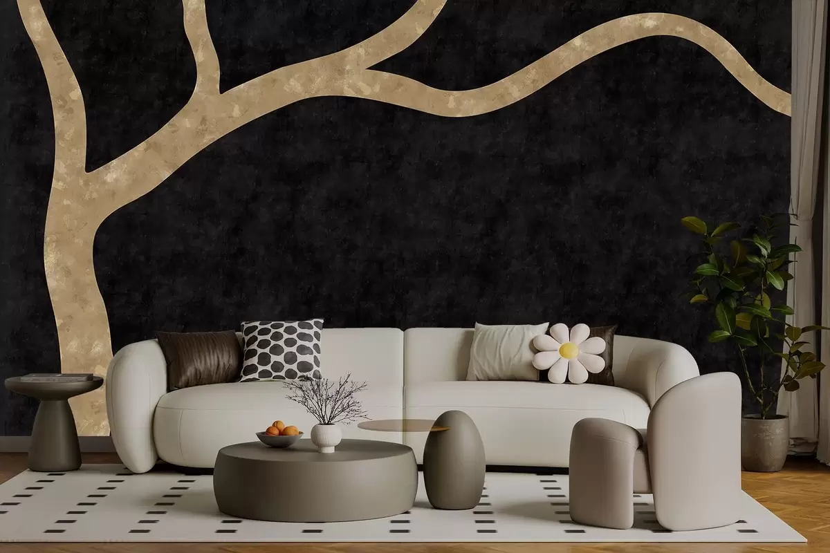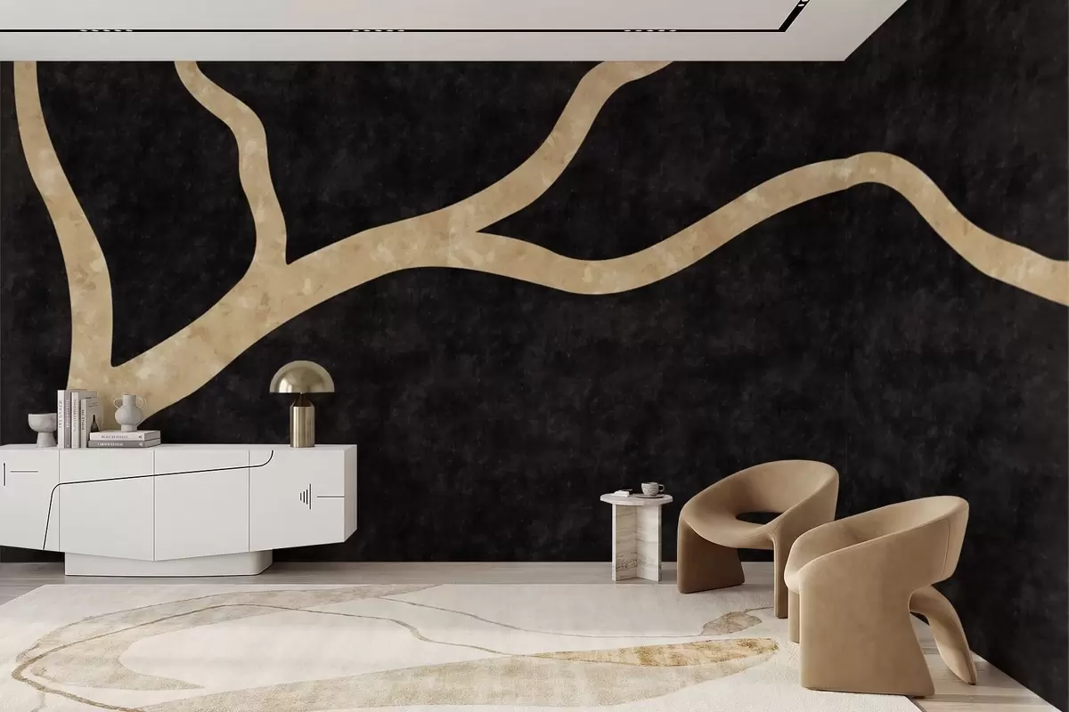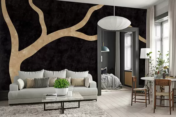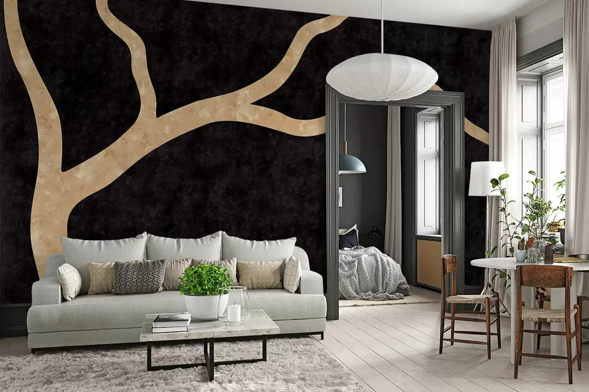 Valokuvatapetti Vaalea oksa mustalla taustalla Nr w05144v4