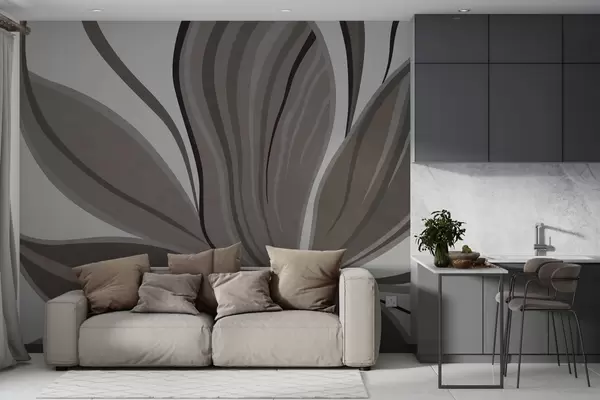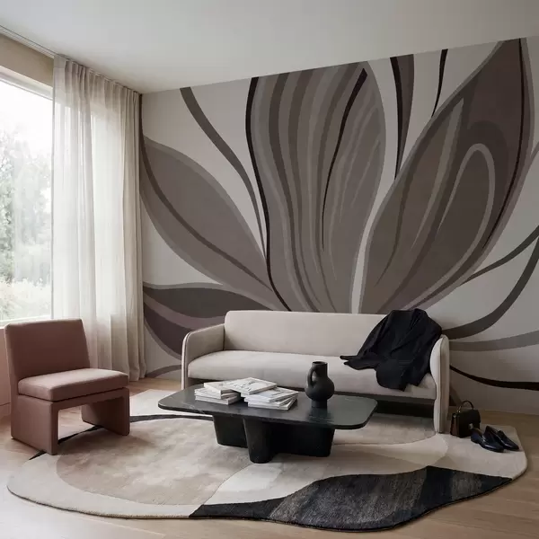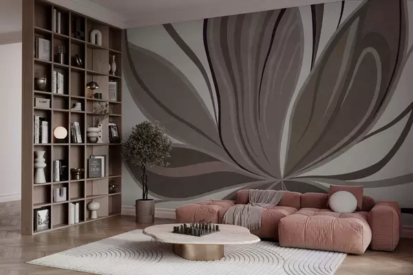Valokuvatapetti Abstrakti kukka, jossa on pehmeitä viivoja harmaan ja beigen sävyissä Nr w05147v1