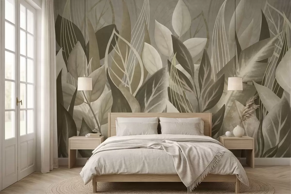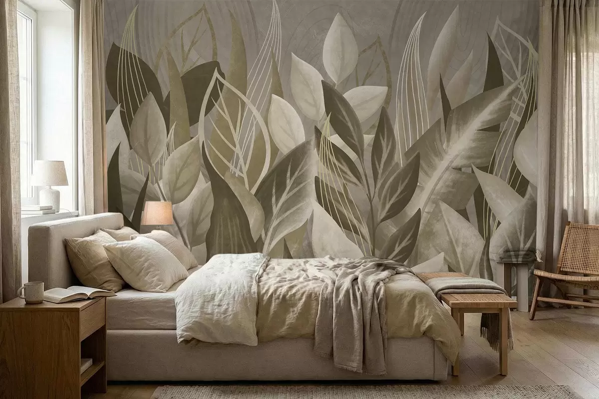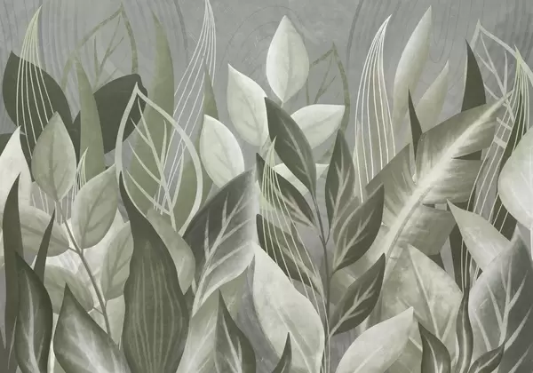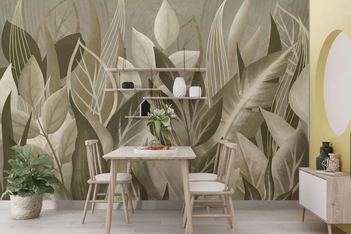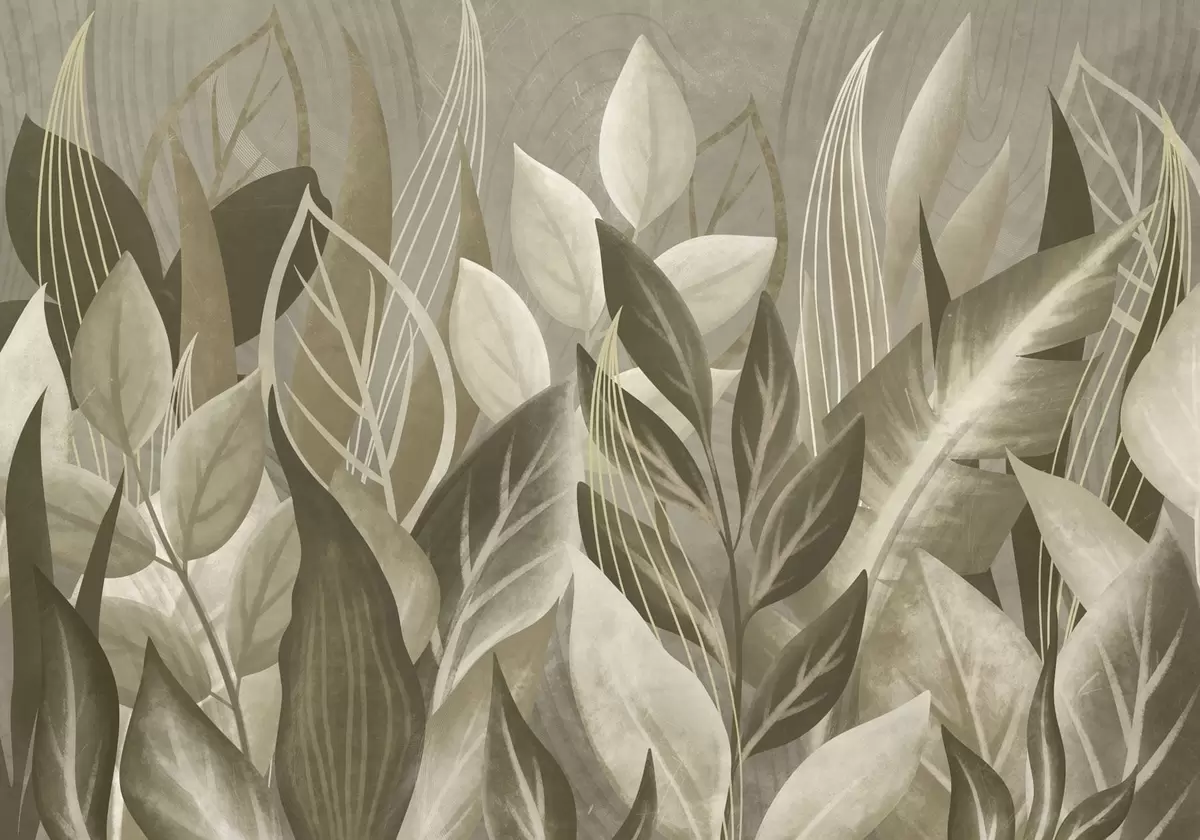 Valokuvatapetti Abstraktit lehdet beige- ja vihreissä sävyissä Nr w05148