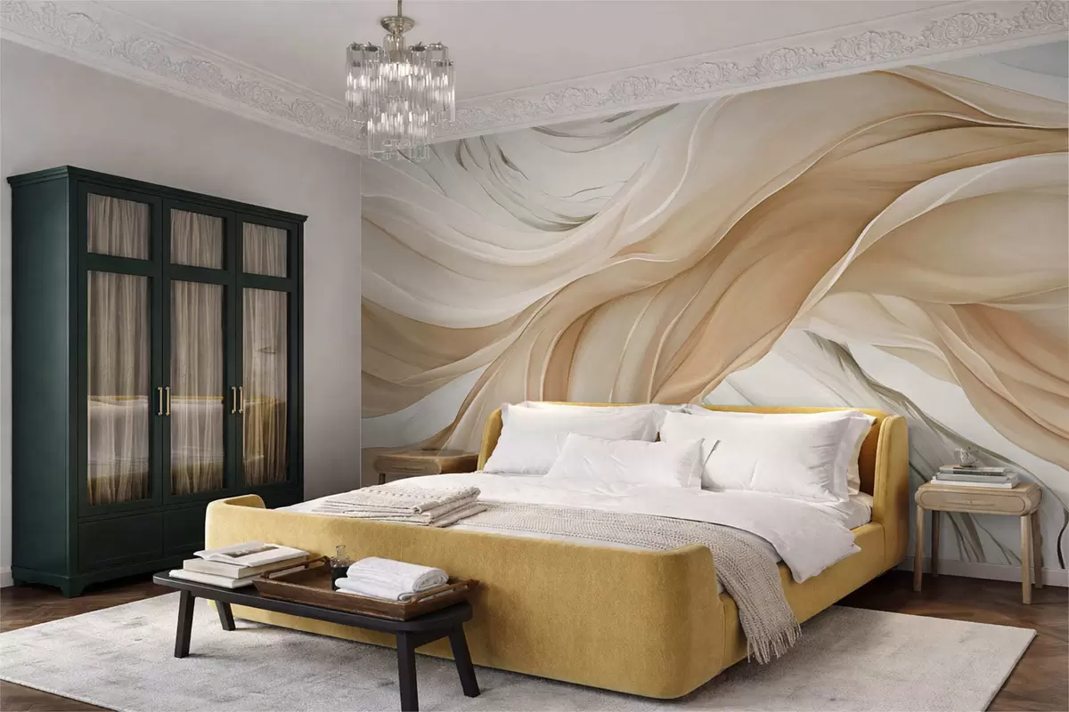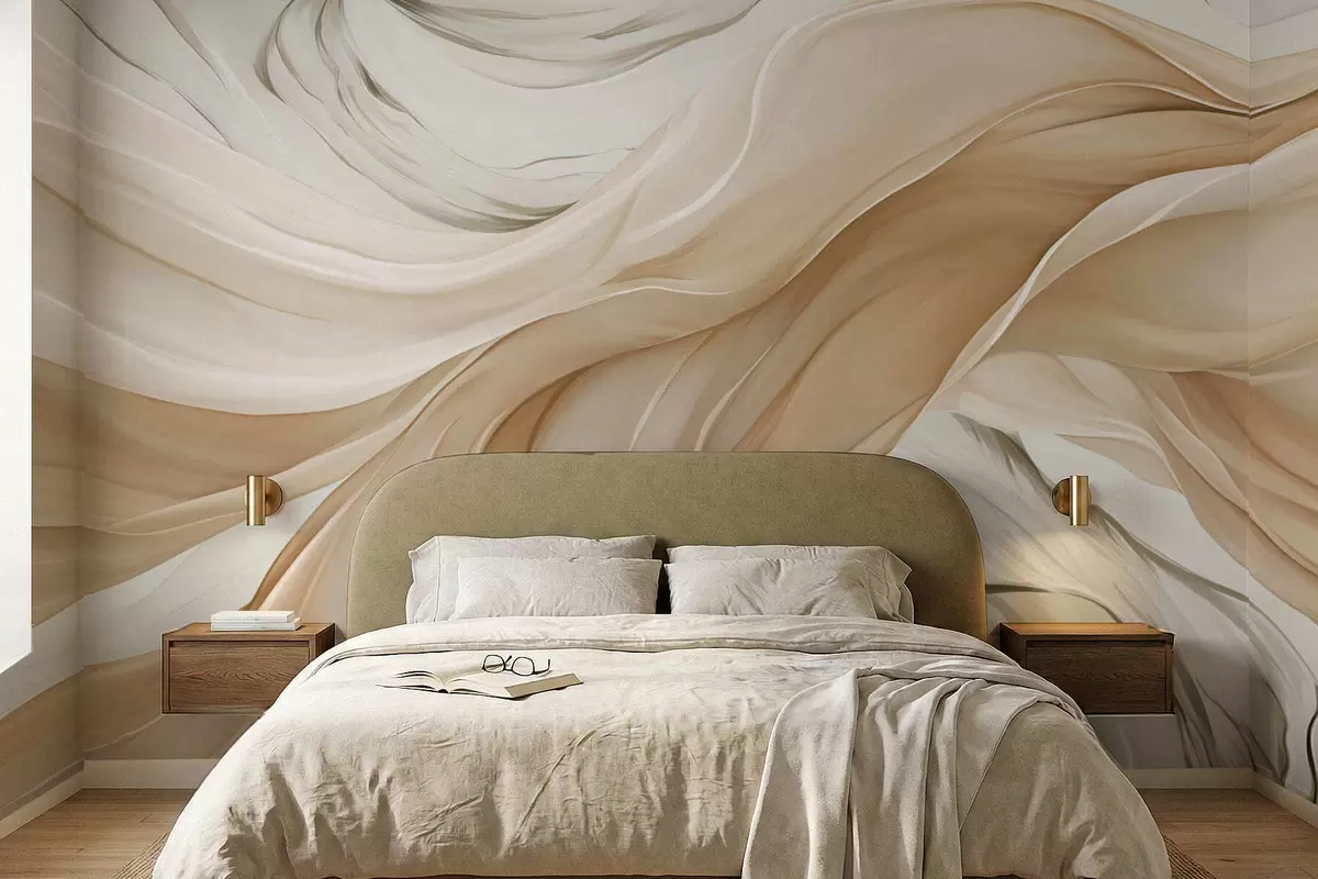 Valokuvatapetti Virtaavat beige kangas aallot Nr w05152