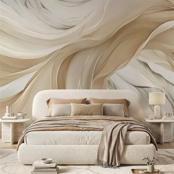 Valokuvatapetti Virtaavat beige kangas aallot Nr w05152