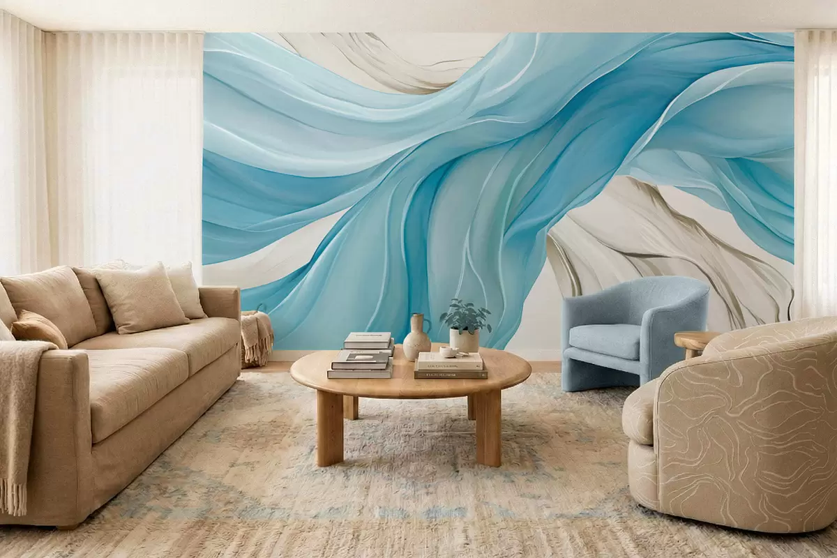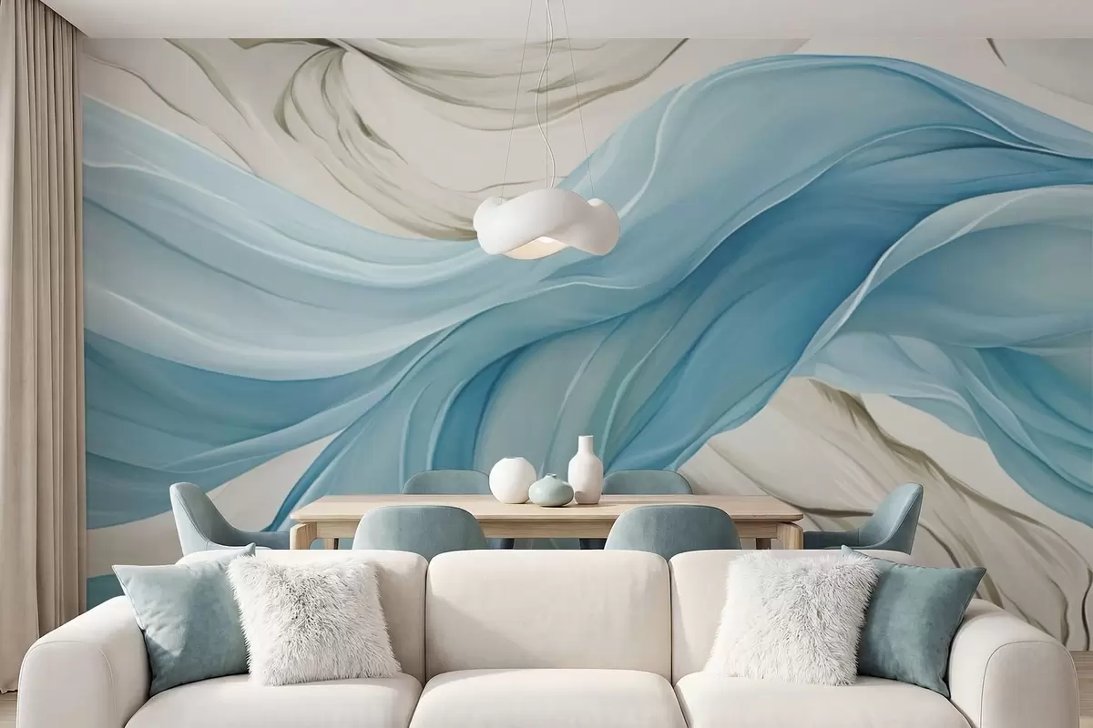 Valokuvatapetti Virtaavat siniset kangaslaineet Nr w05152v1
