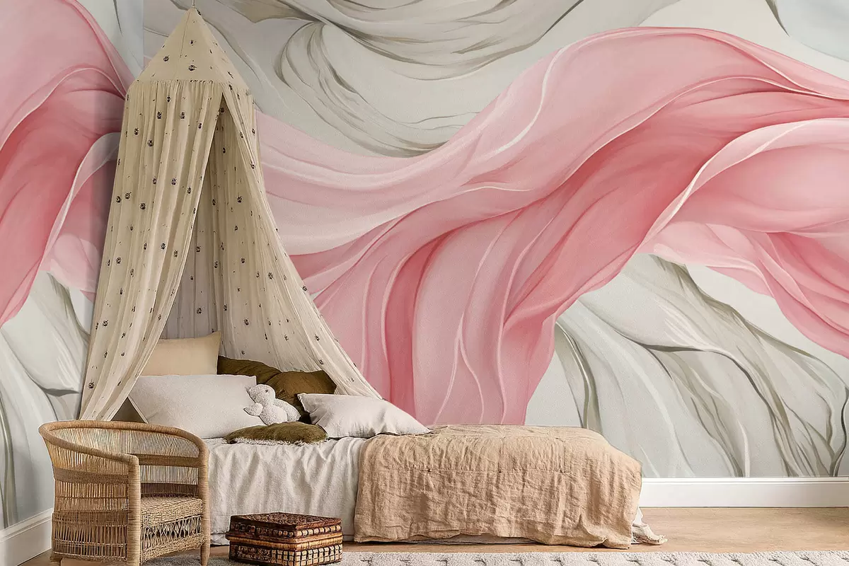 Valokuvatapetti Virtaavat vaaleanpunaiset kangaslaineet Nr w05152v2
