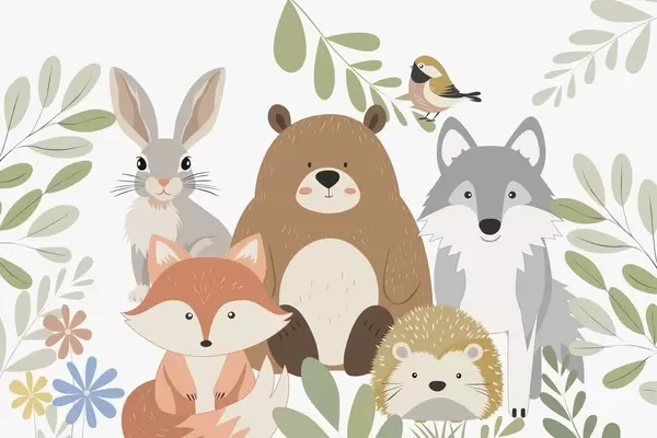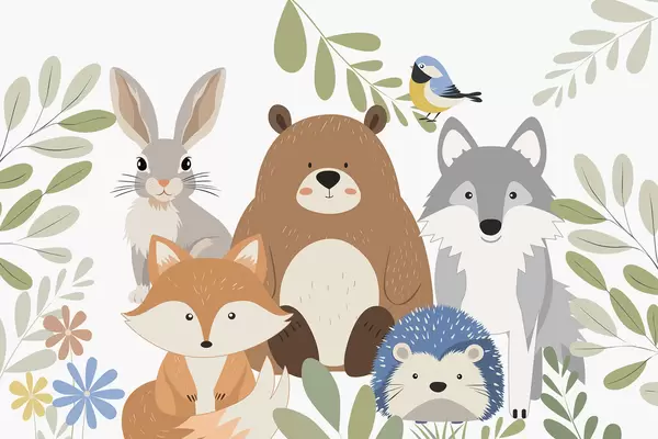 Valokuvatapetti Söpöjä metsän eläimiä Nr w05165