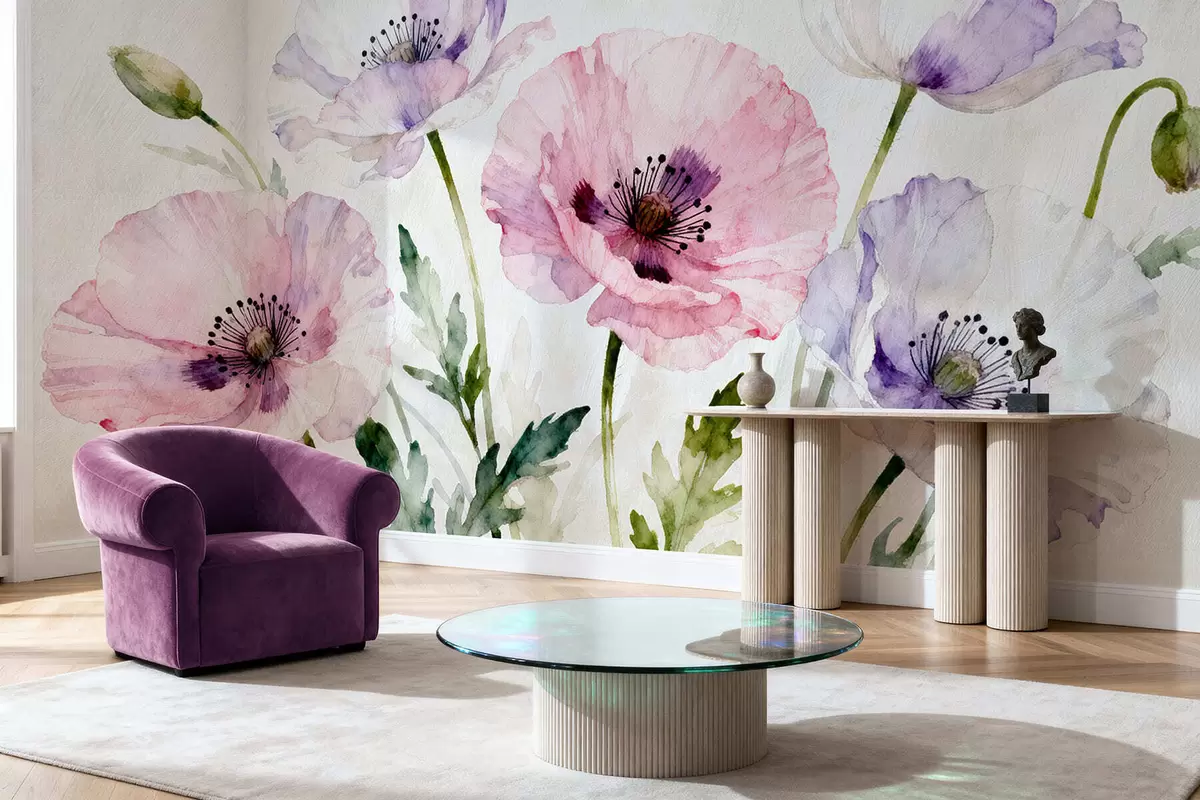 Valokuvatapetti Akvarelli unikot Nr w05174