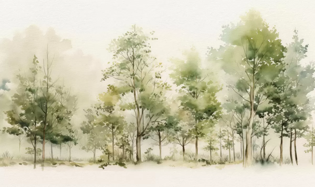 Valokuvatapetti Vesivärimaalaus lehtipuumetsästä Nr w05180