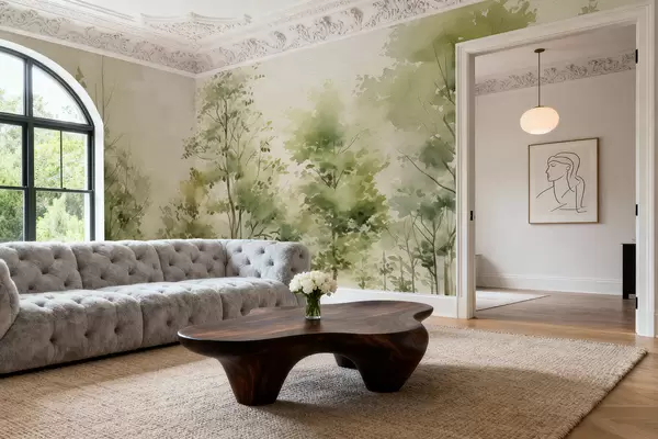Valokuvatapetti Vesivärimaalaus lehtipuumetsästä Nr w05180