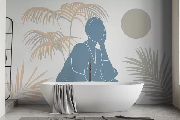 Valokuvatapetti Naisen siluetti ja palmunlehdet Nr w05190v1